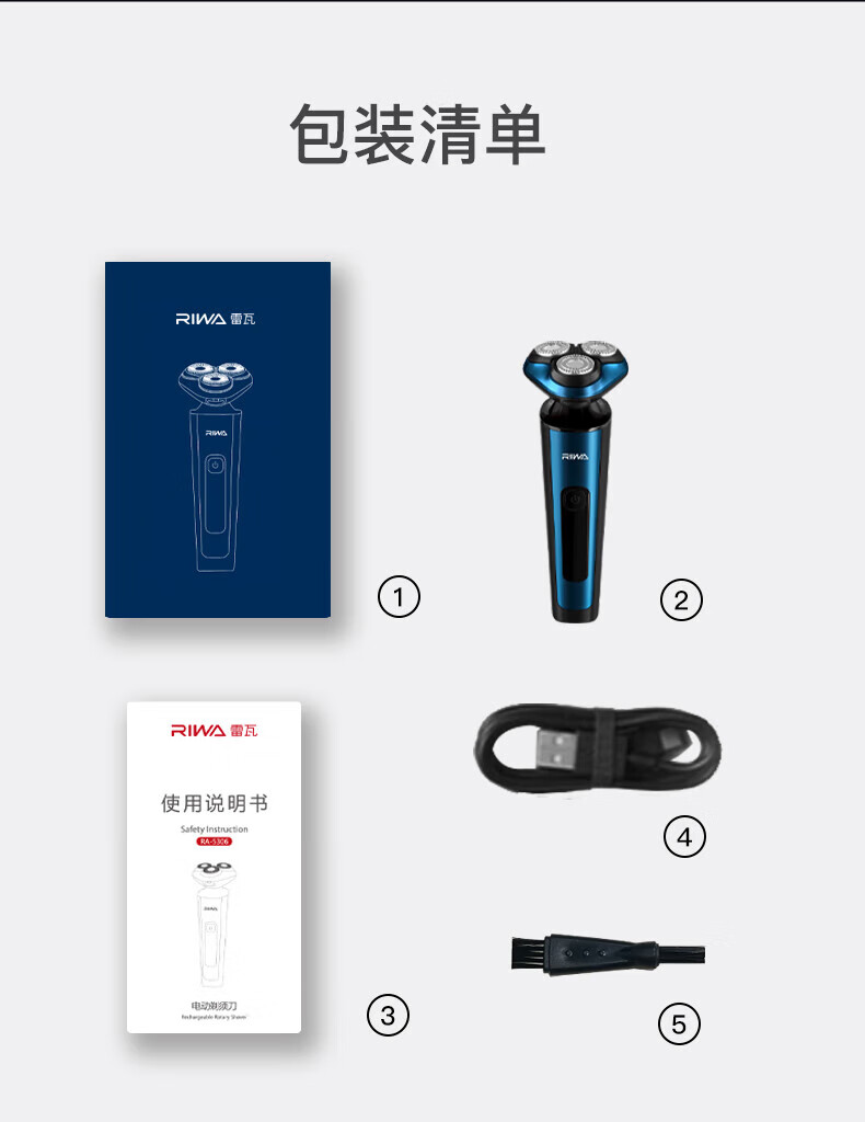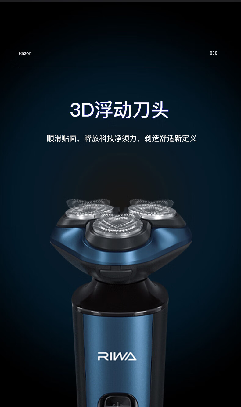 家用电器  > 个护健康  > 剃须刀  >  雷瓦/RIWA  >  雷瓦剃须刀 RA-5306 旅行时尚便携 家用智能刮胡刀快充防水 蓝色 RA-5306/个
