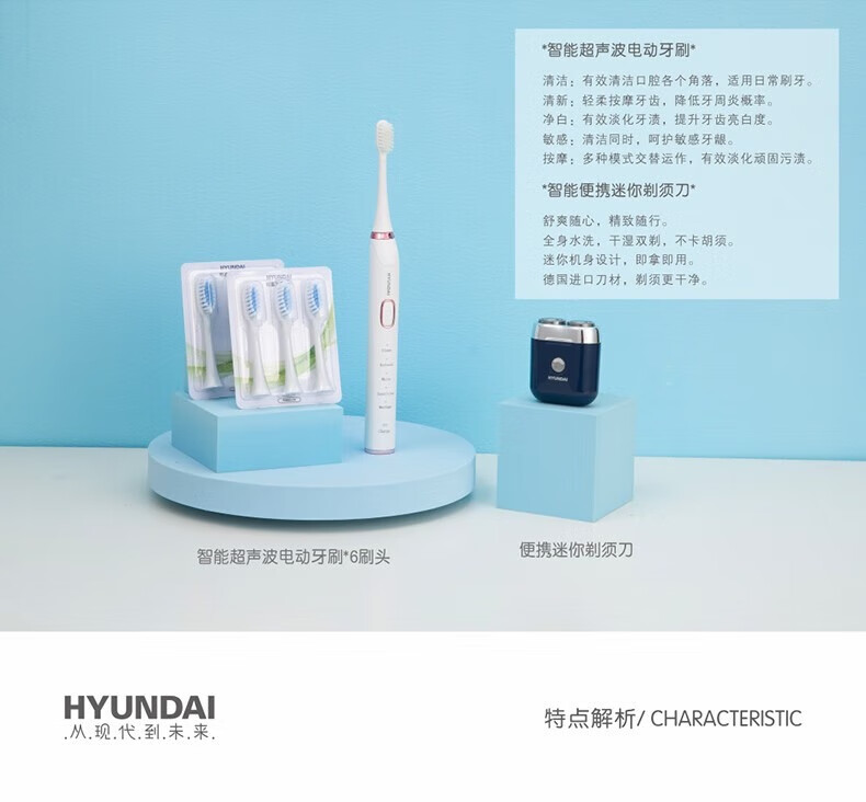 • 商品名称:HYUNDAI 电动牙刷&剃须刀商务套装 YT805 YT805/个