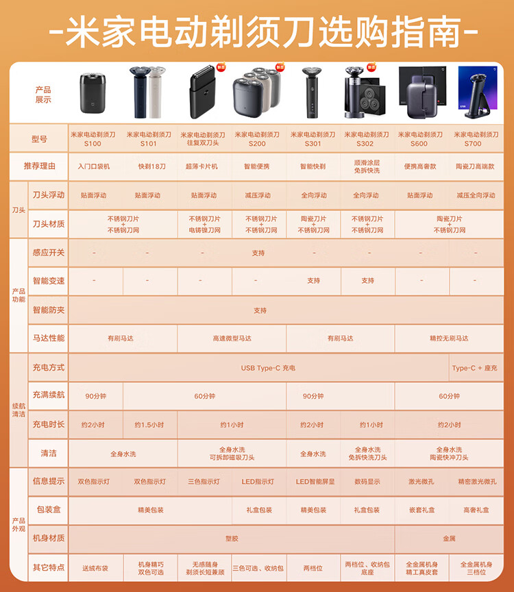 • 商品名称:米家电动剃须刀S302 小米旋转式刮胡刀 双环弧面刀网 浮动贴面剃须 送男友新年礼物推荐 S302/台