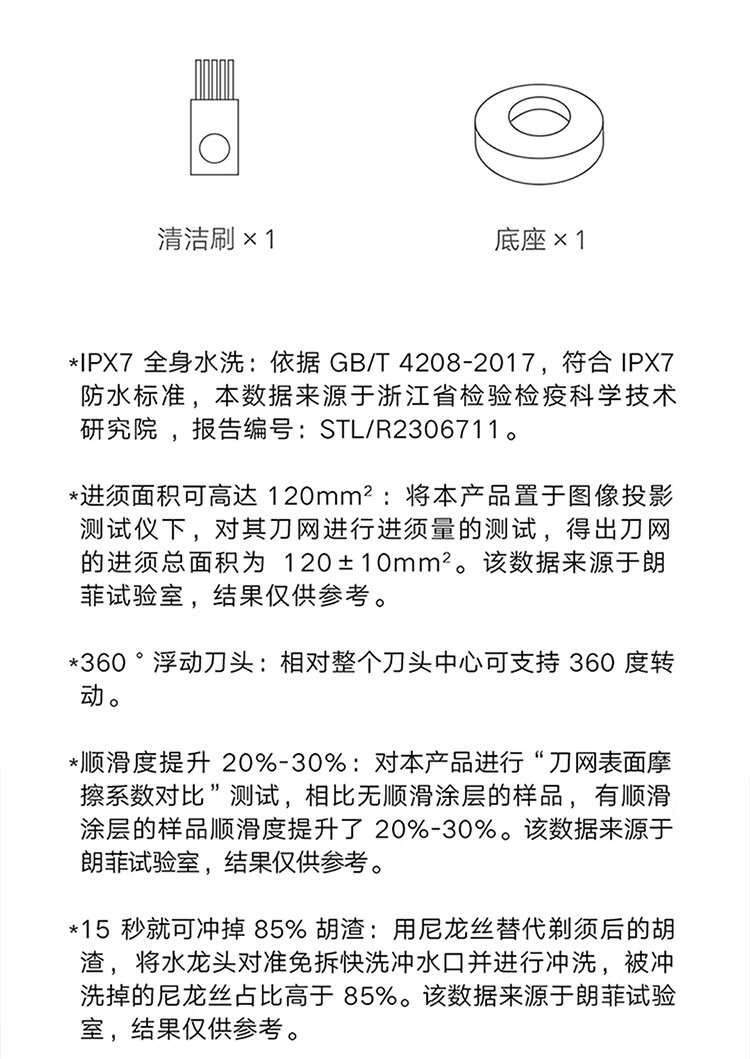 包装清单: 主机、底座、充电线、清洁刷、收纳包、说明书
