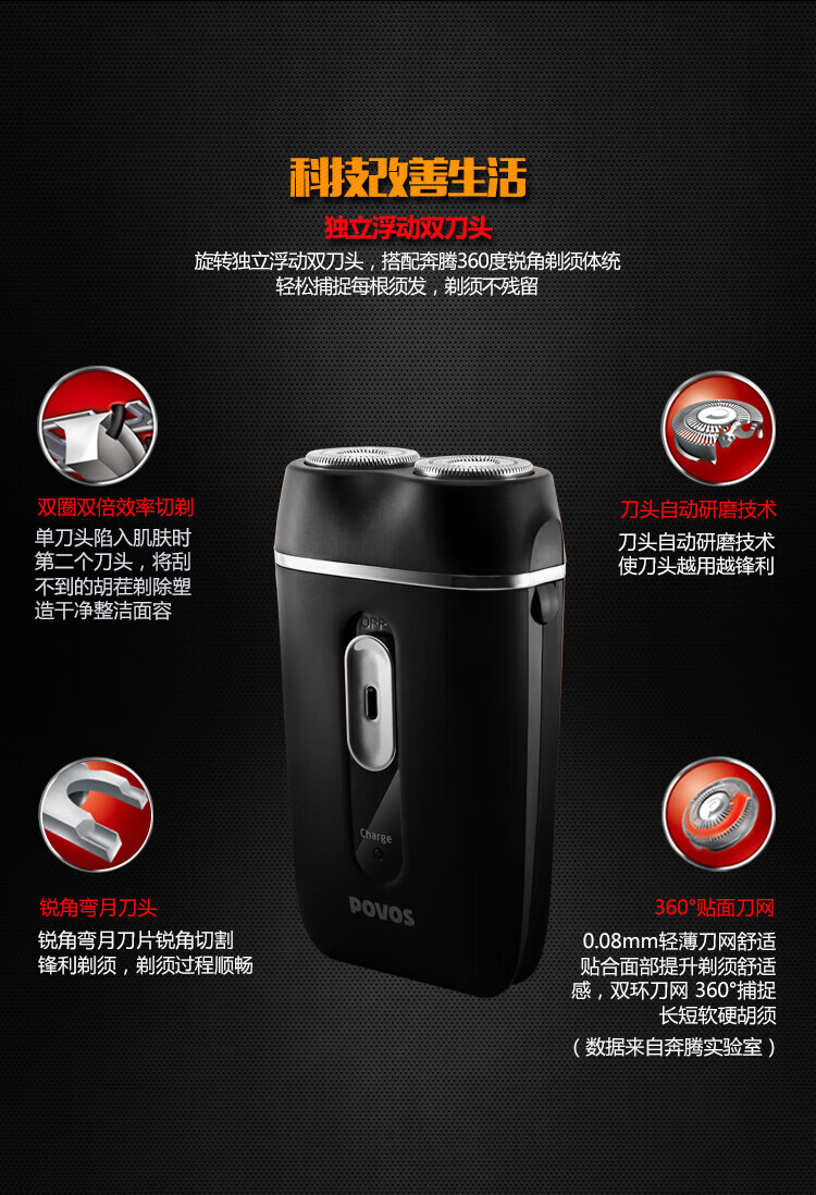 商品名称: 奔腾(POVOS)电动剃须刀男士胡须刀PQ2601节日礼物工会福利 黑色 普通装 PQ2601/个