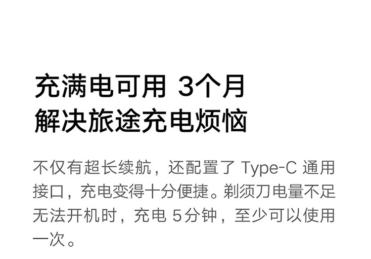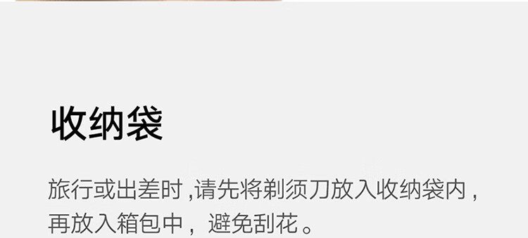 包装清单: 剃须刀*1,防尘盖*1,type-c充电线*1,说明书*1,收纳袋*1