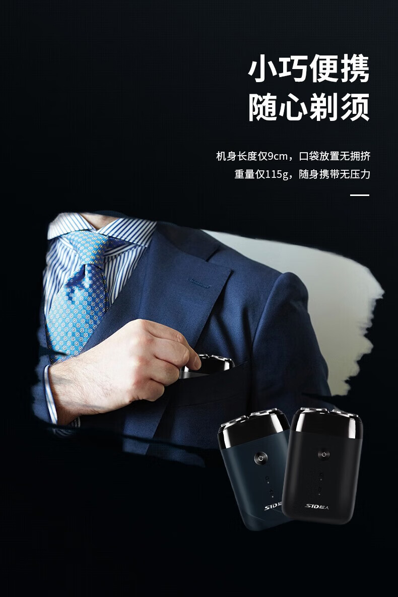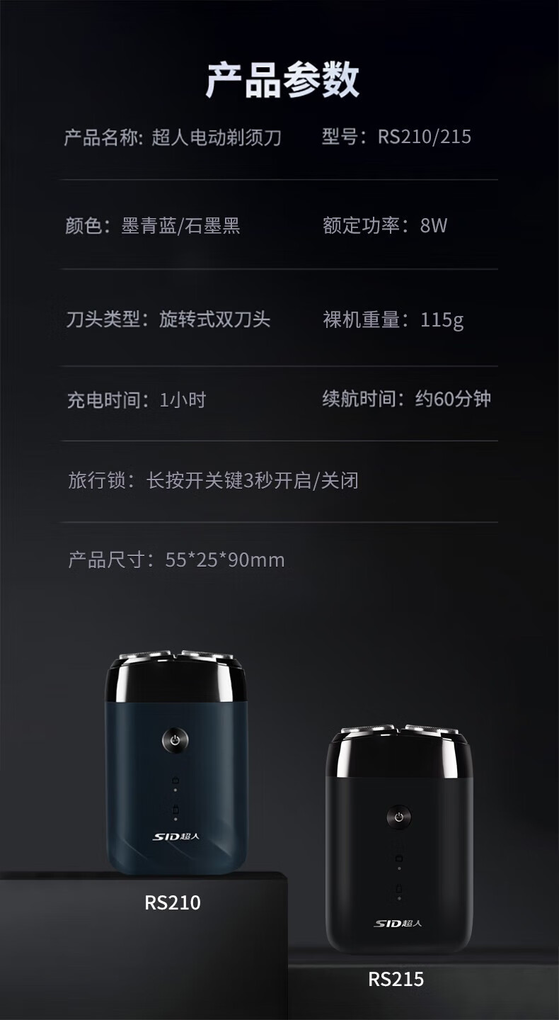 商品名称: 超人(SID)电动剃须刀 双头全身水洗 便携式小巧迷你出差旅行刮胡刀RS210墨青蓝 RS210/个