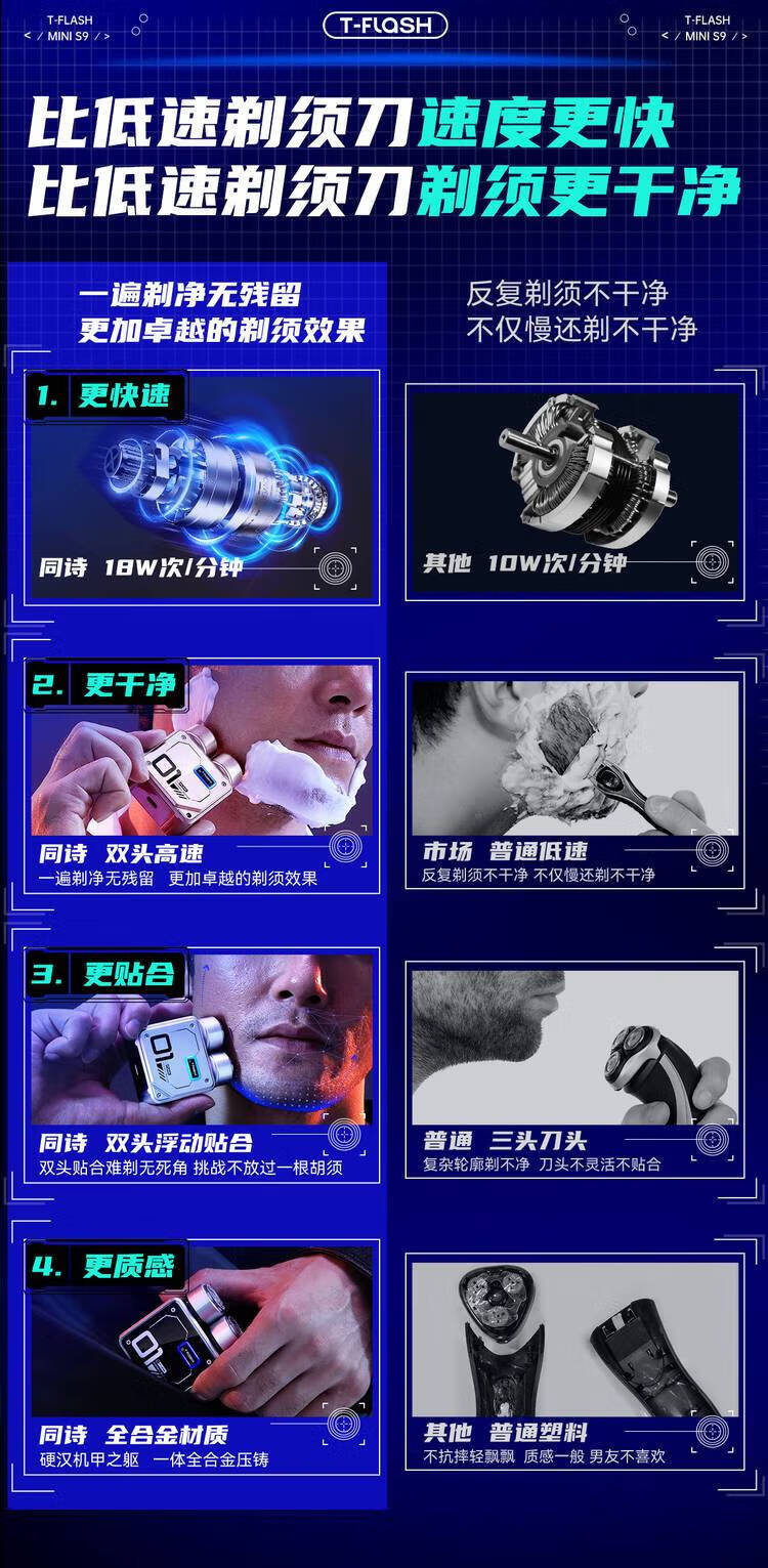 • 商品名称:同诗 艾齐S9双头剃须刀合金便携式迷你男电动刮胡刀送男友父亲实用礼物 曜石黑 礼盒装 S9/个