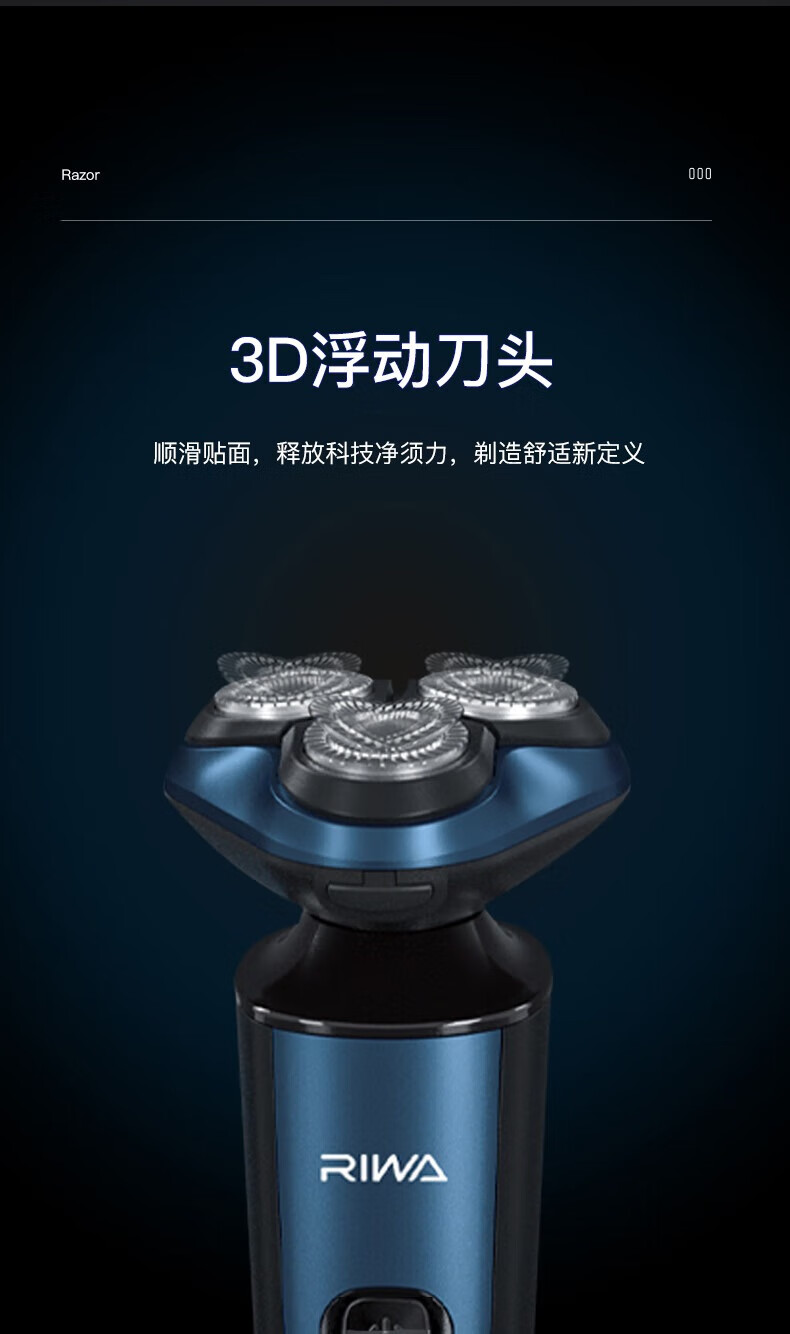 家用电器  > 个护健康  > 剃须刀  >  雷瓦/RIWA  >  雷瓦(RIWA)三刀头锂电闪充持久续航剃须刀 RA-5102/个