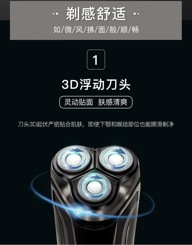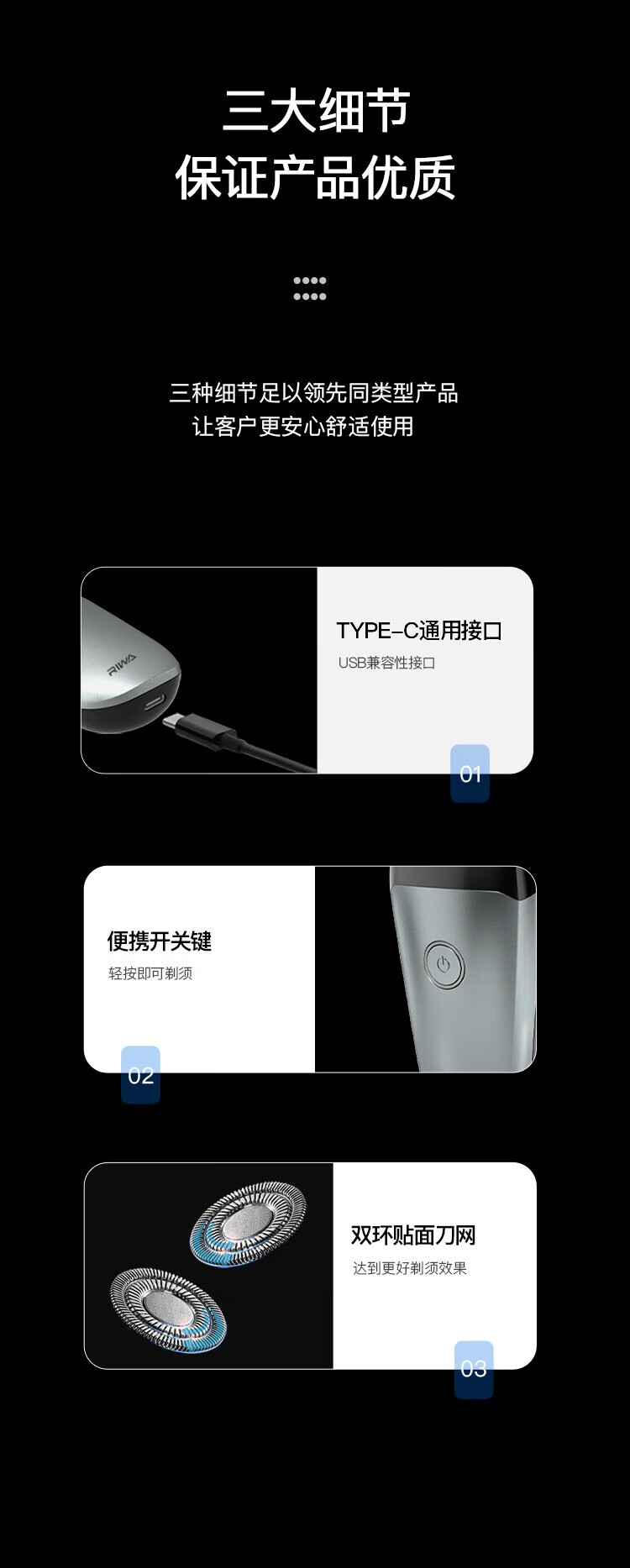 雷瓦(RIWA)三刀头锂电闪充持久续航剃须刀 RA-5102/个