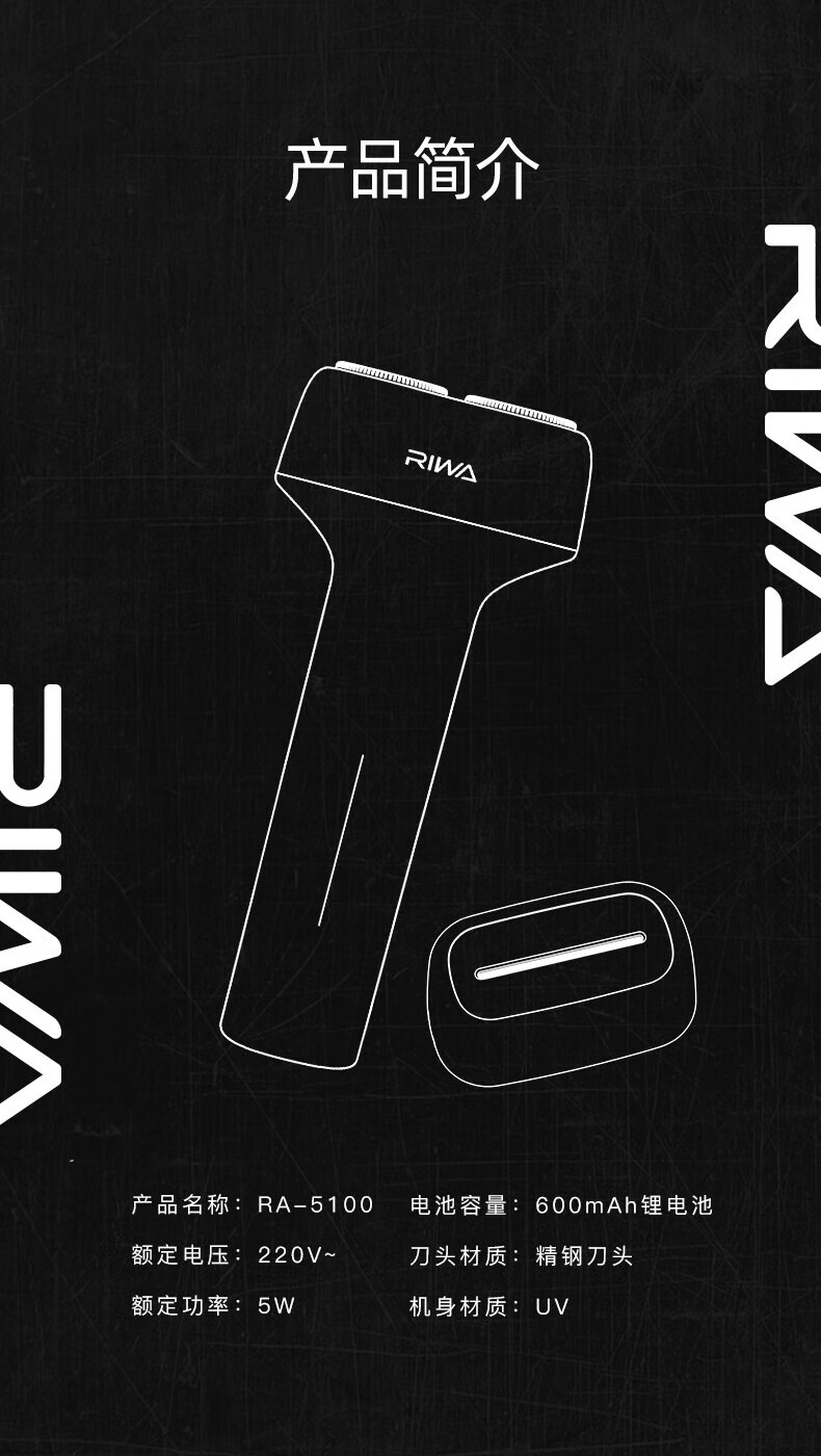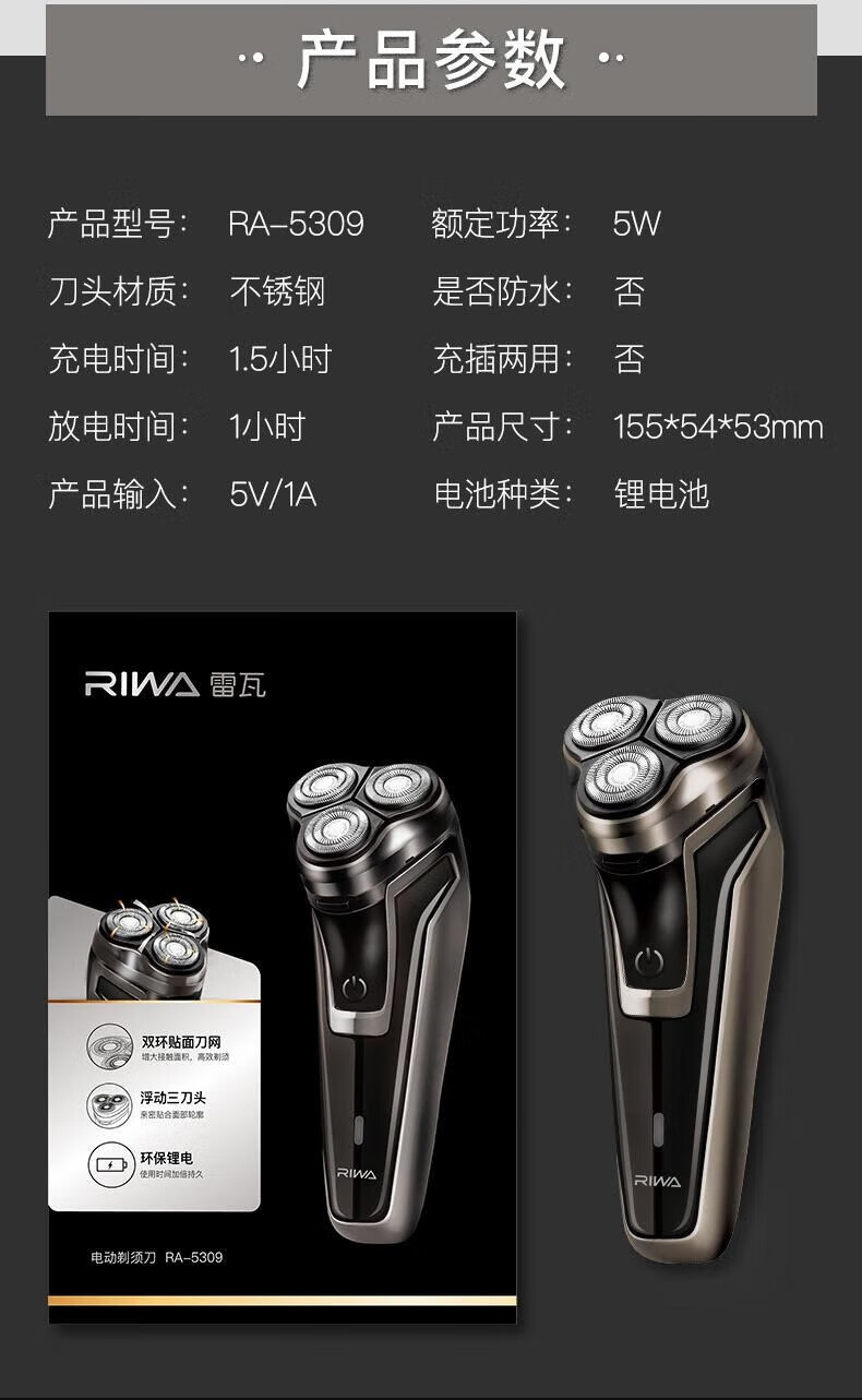 • 商品名称:雷瓦(RIWA)三刀头锂电闪充持久续航剃须刀 RA-5102/个