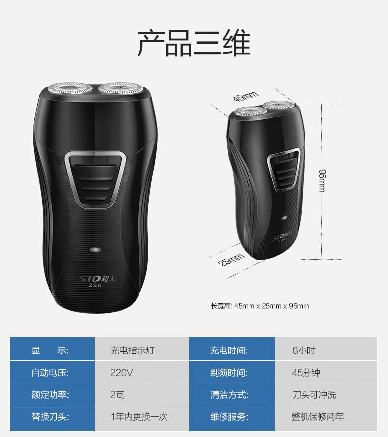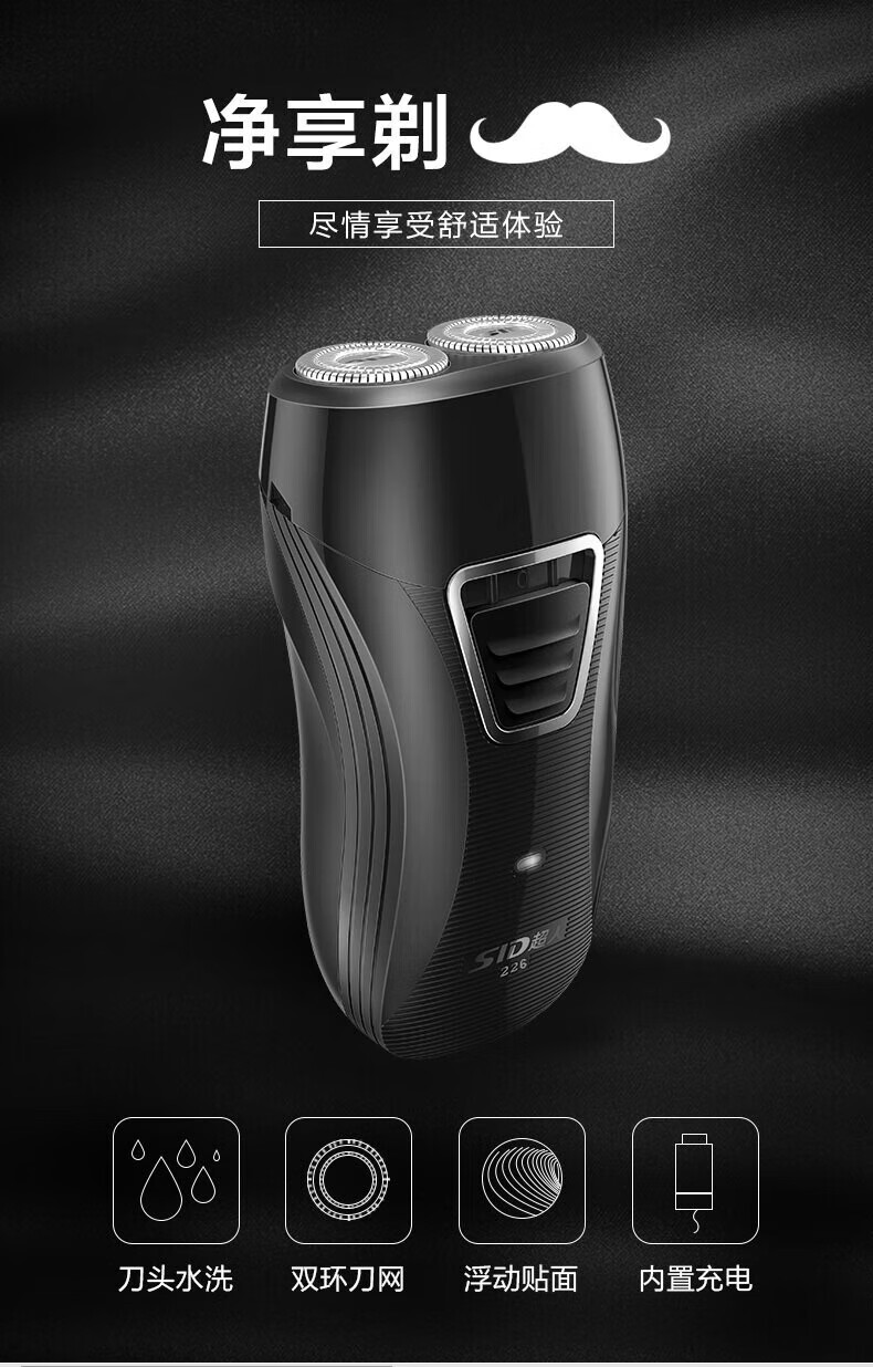 商品名称: 超人(SID)电动剃须刀旋转式双刀头男士刮胡刀充电式胡须刀便携剃须刀 SS226 SS226/个