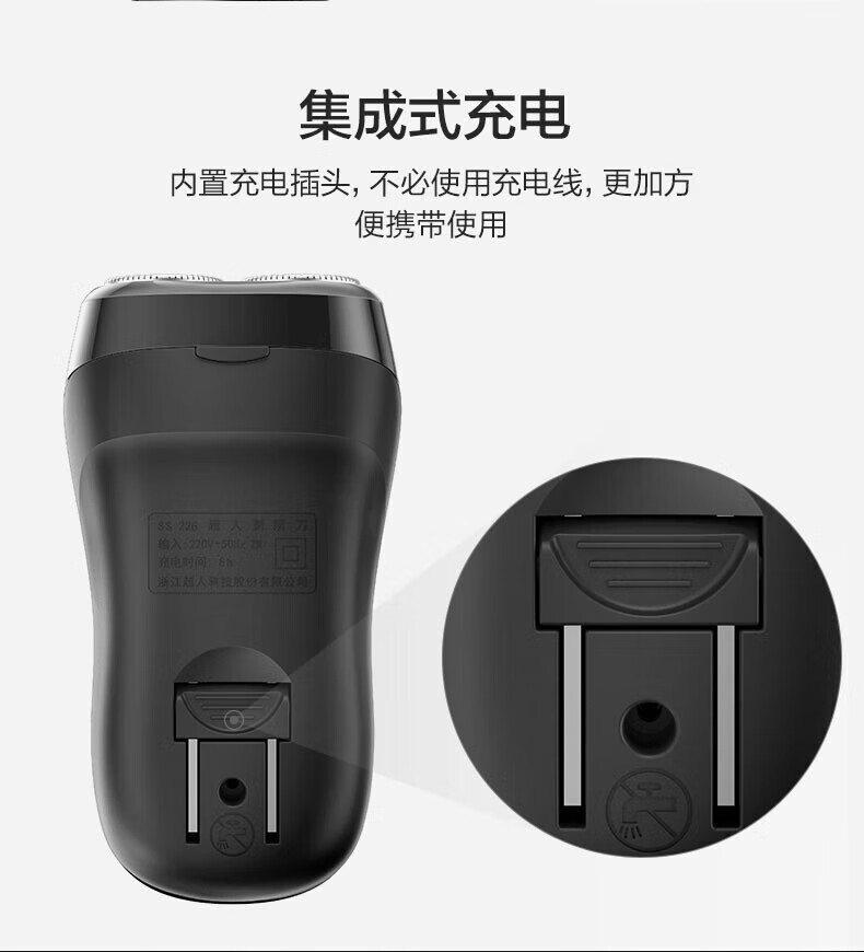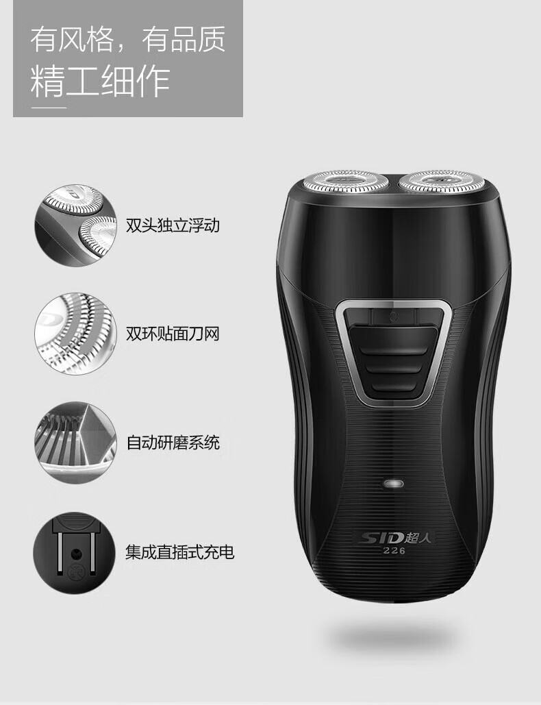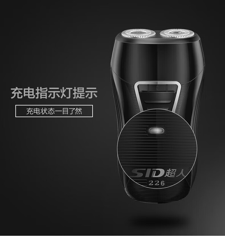 超人(SID)电动剃须刀旋转式双刀头男士刮胡刀充电式胡须刀便携剃须刀 SS226 SS226/个