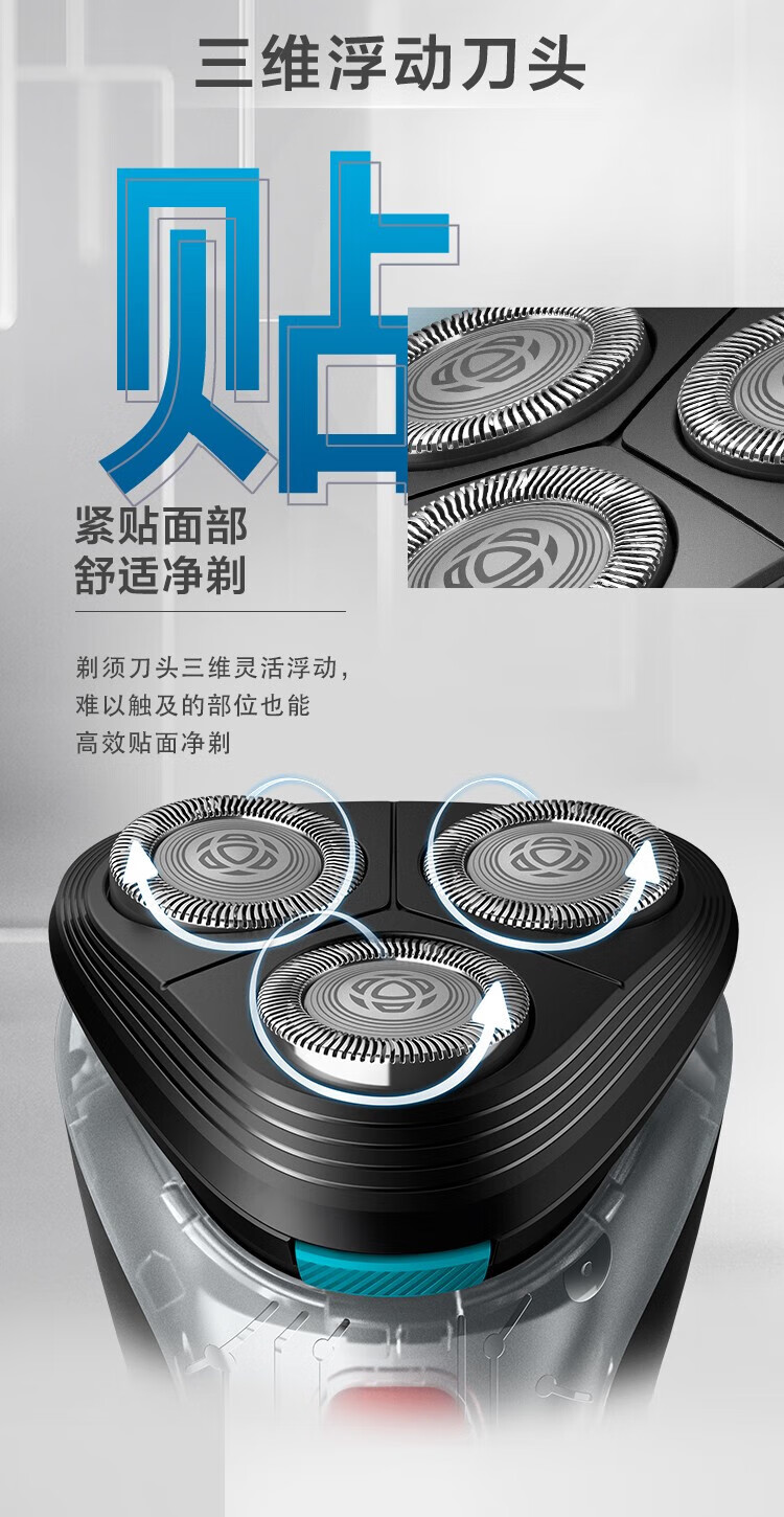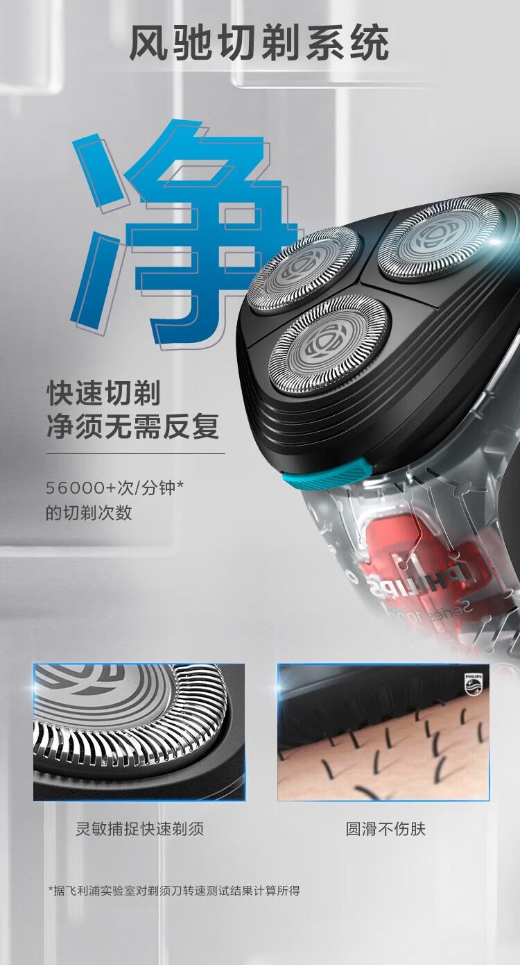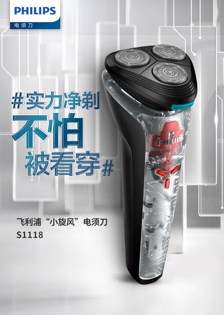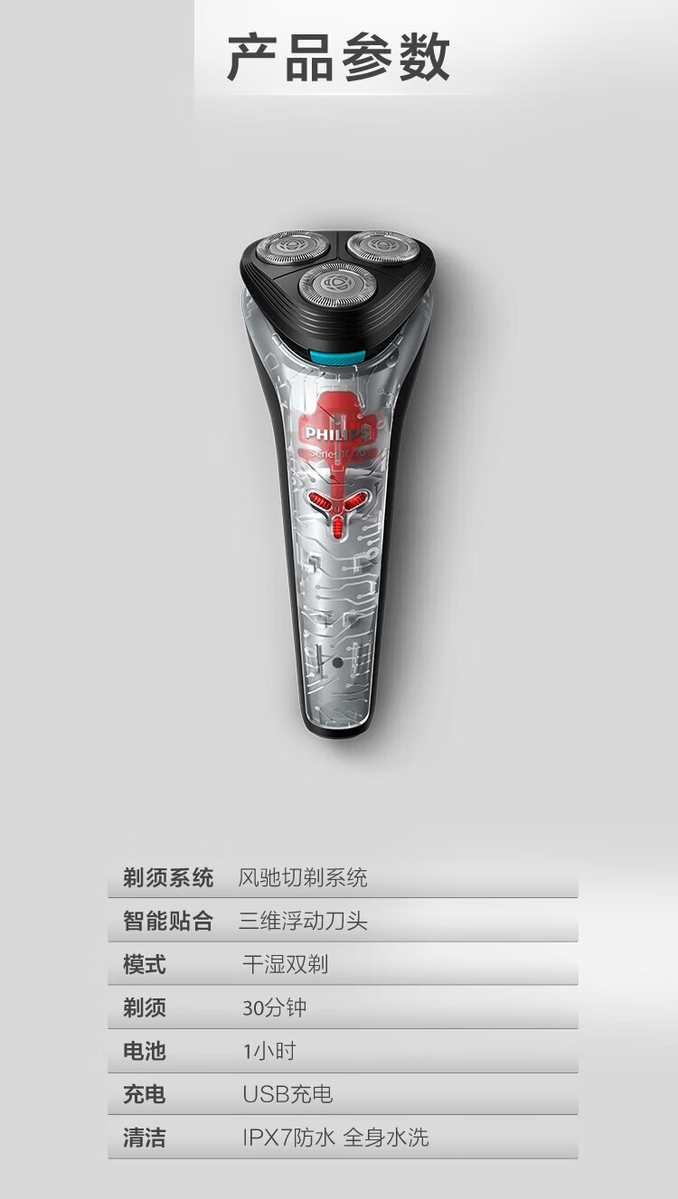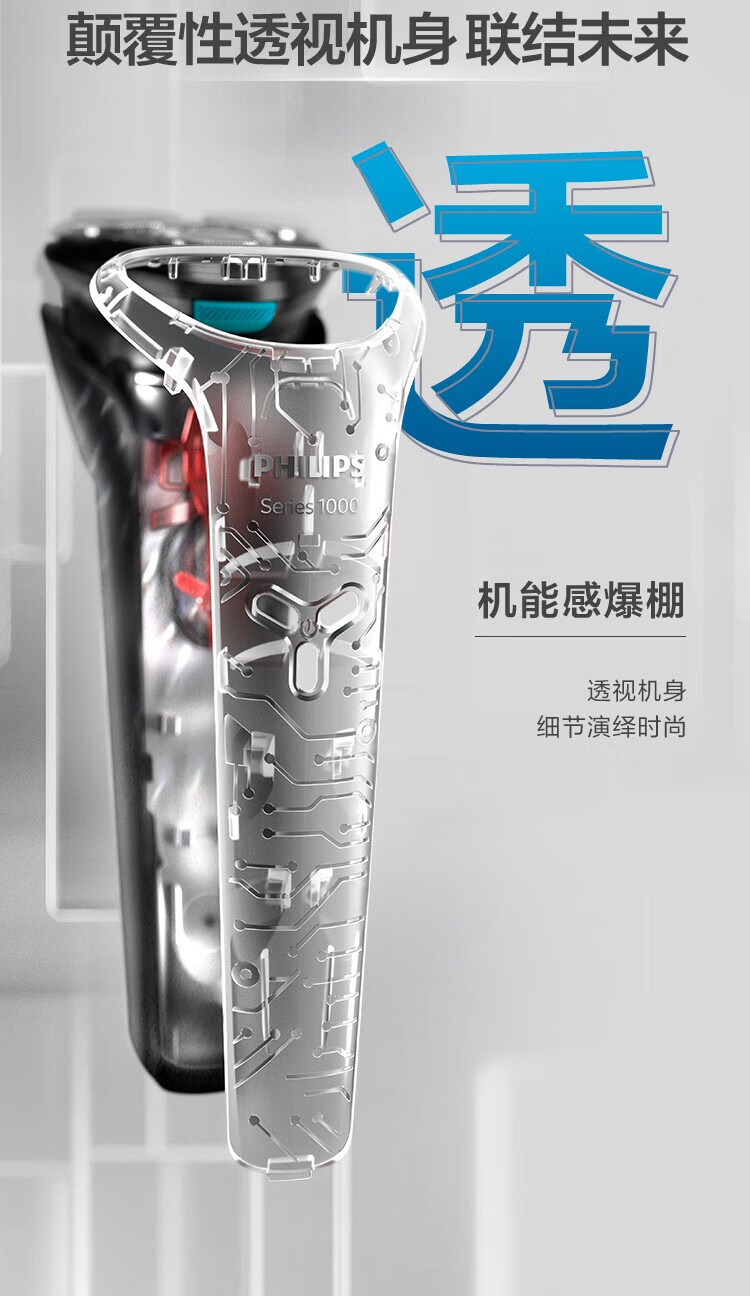 • 商品名称:PHILIPS飞利浦剃须刀电动进口三刀头剃胡刀透明机身S1118/02 S1118/02/件