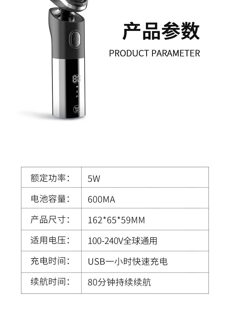 商品名称: Westinghouse 电动剃须刀 原装三刀头全身水洗胡须刀 干湿两用3D剃须刀 WL-TX501 WL-TX501/个