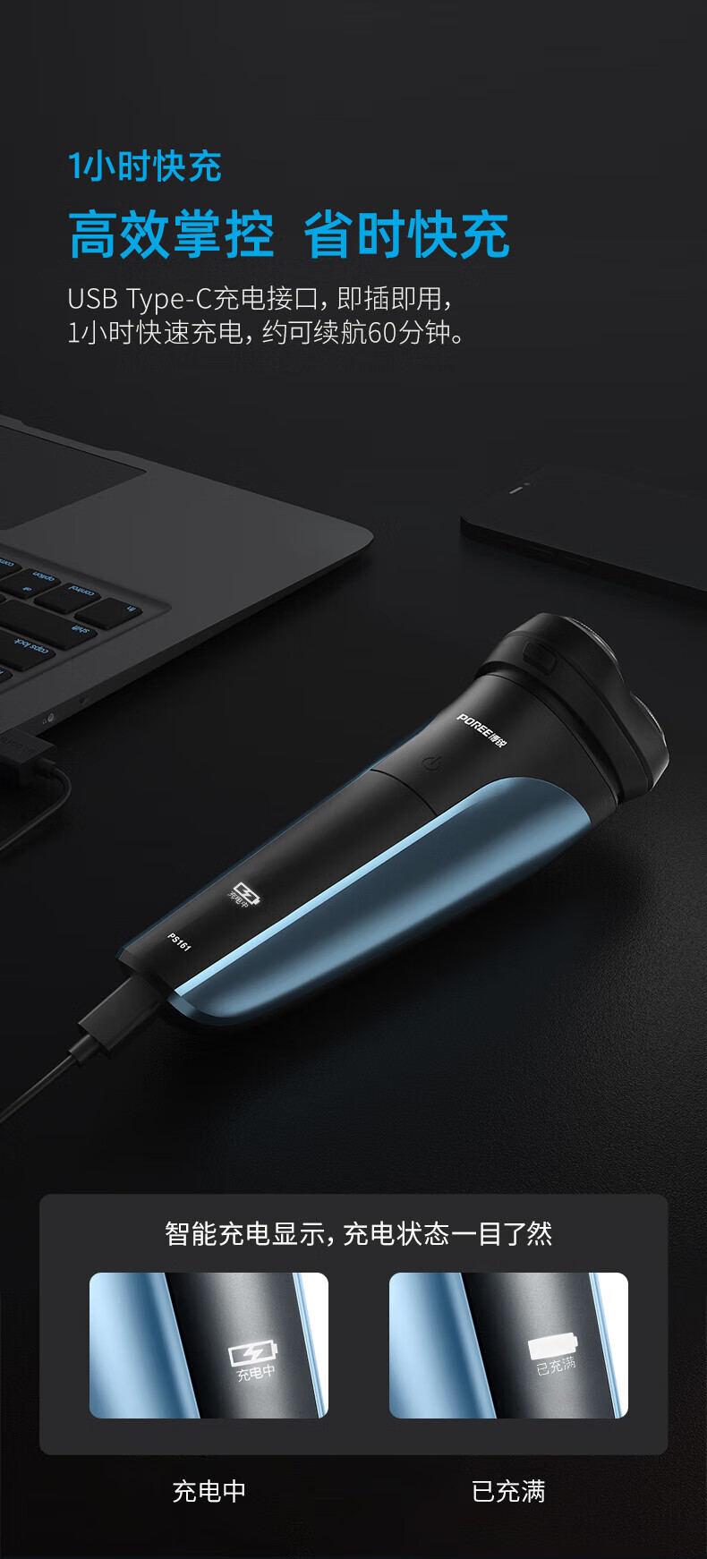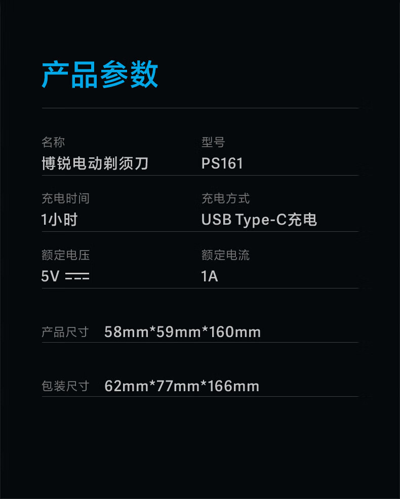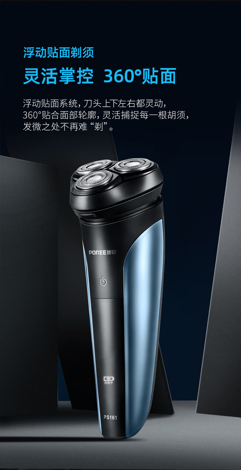 商品名称: 飞科(FLYCO)旗下博锐剃须刀电动刮胡刀剃胡刀男士便携电须刀刮胡子全身水洗快充PS161 # PS161/个