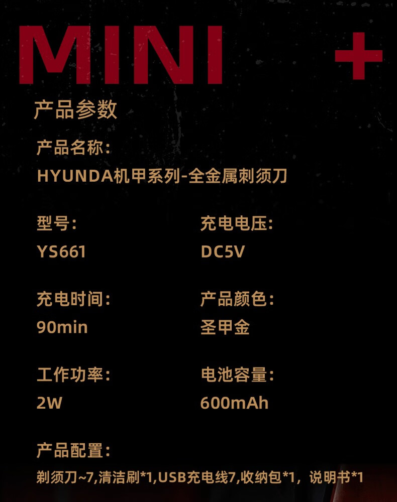 家用电器  > 个护健康  > 剃须刀  >  HYUNDAI  >  HYUNDAI 机甲系列全金属剃须刀 YS661 YS661/个