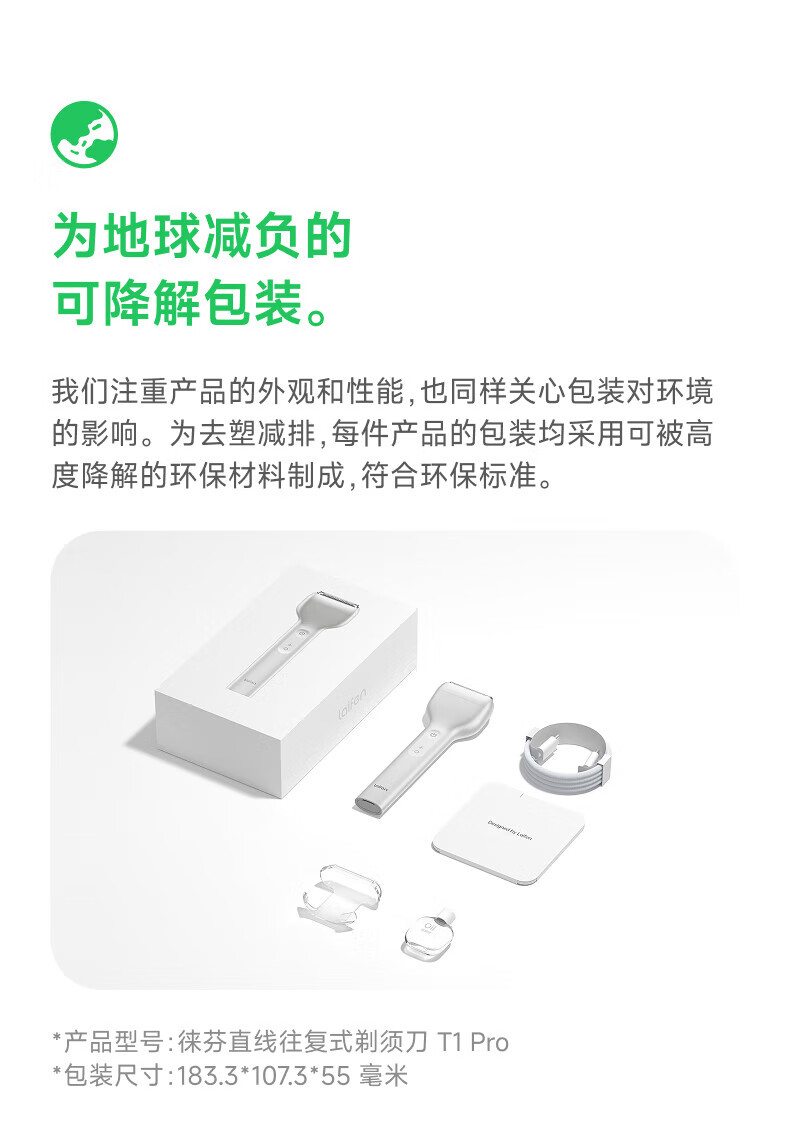 • 商品名称:徕芬剃须刀 往复式电动剃须刀便携刮胡刀T1 Pro 蓝色 (短须版) T1PRO/个