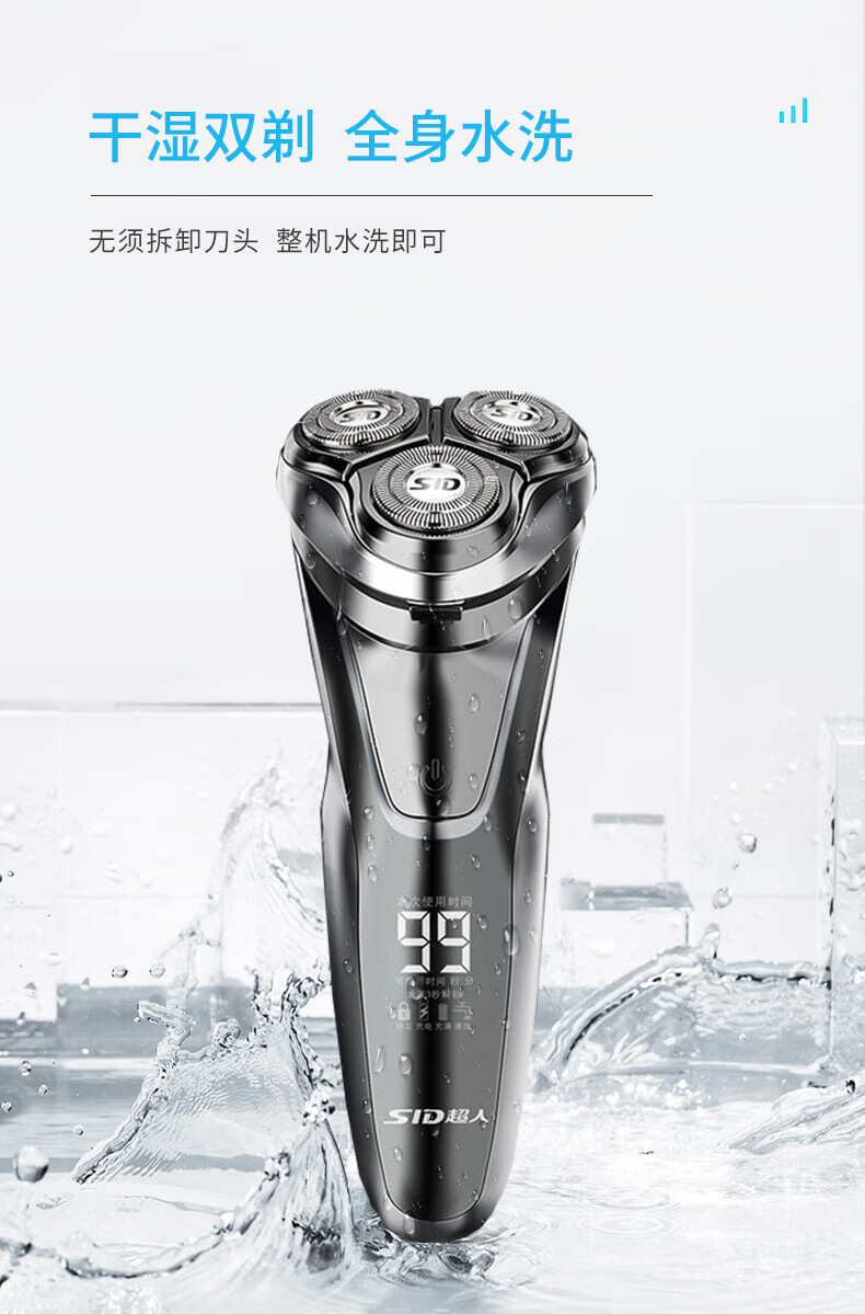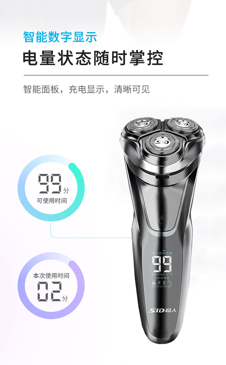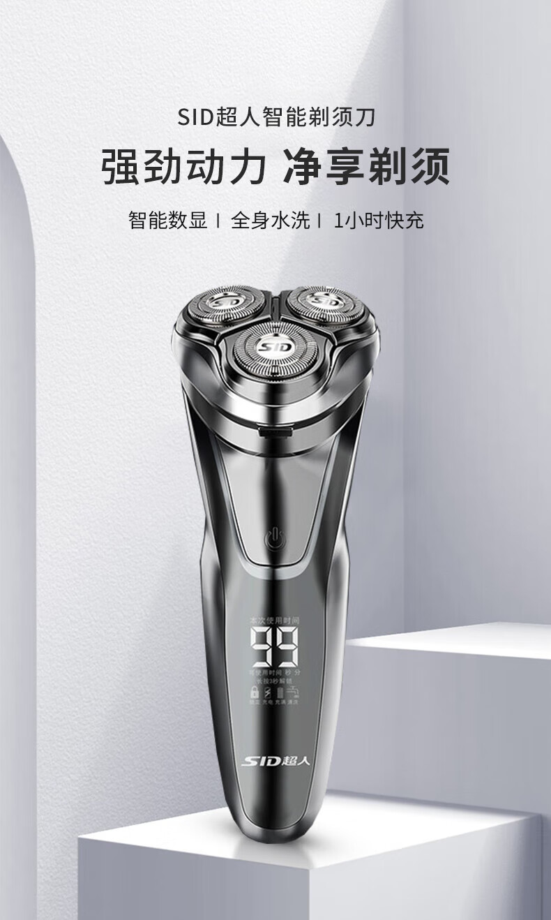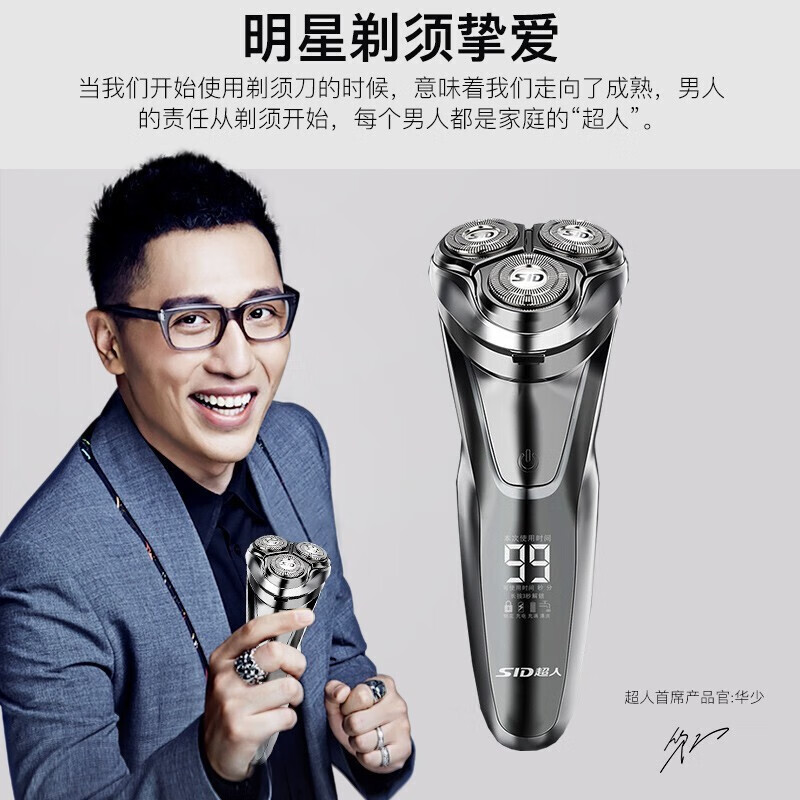 家用电器  > 个护健康  > 剃须刀  >  超人/SID  >  超人(SID) 剃须刀电动刮胡刀剃胡刀男士便携电须刀刮胡子全身水洗RS7350枪色 豪华数显款 RS7350/个