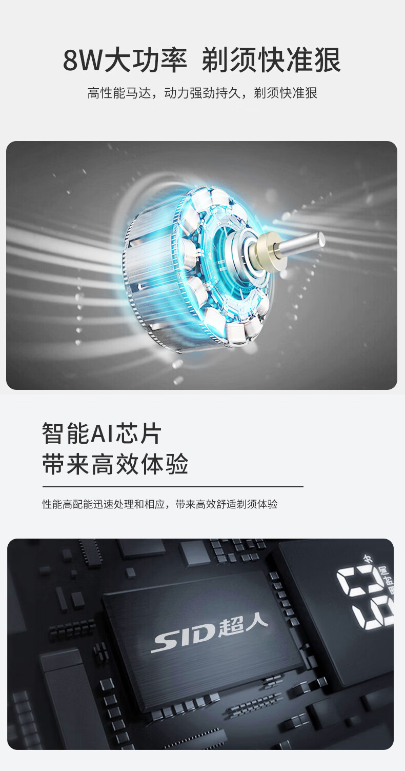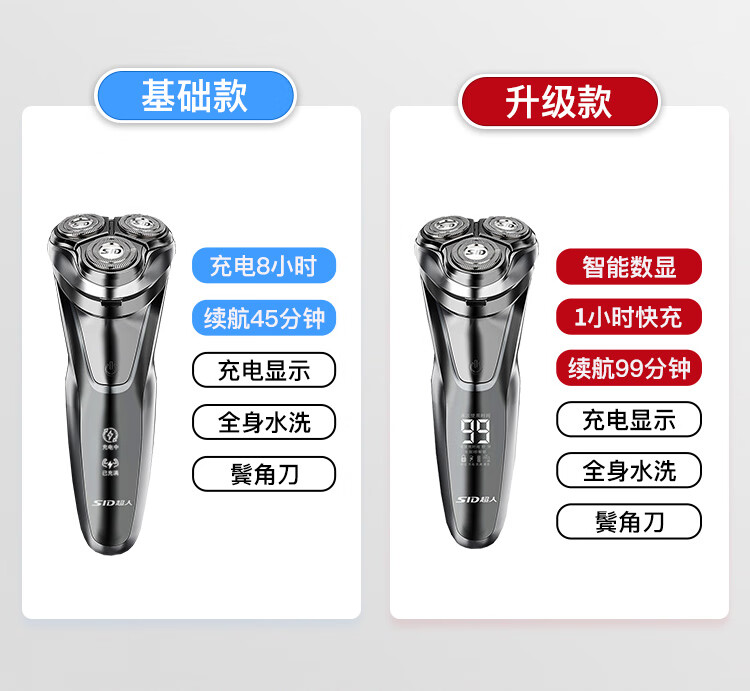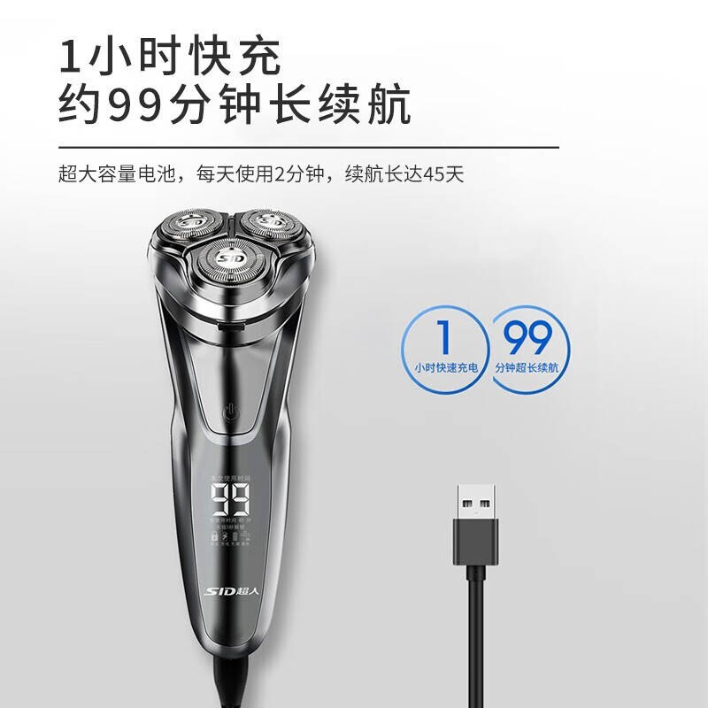 超人(SID) 剃须刀电动刮胡刀剃胡刀男士便携电须刀刮胡子全身水洗RS7350枪色 豪华数显款 RS7350/个