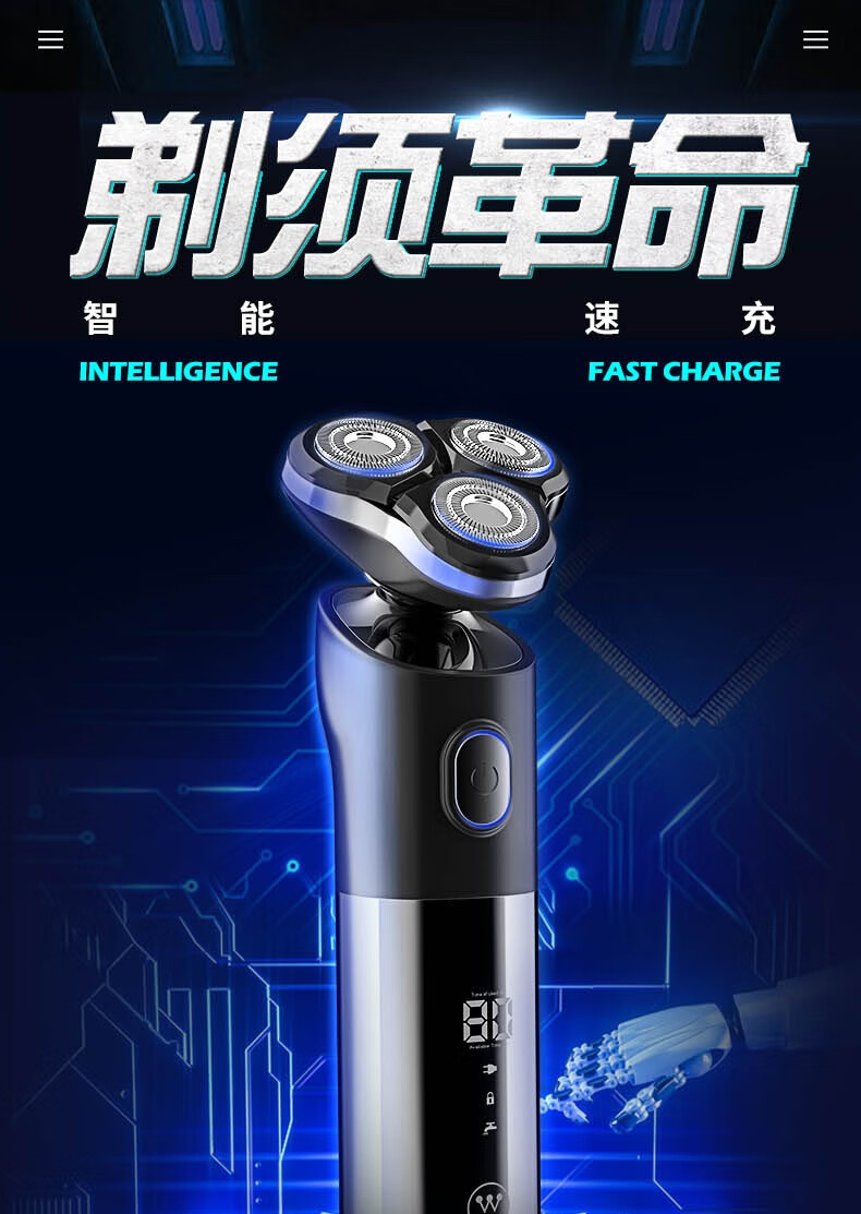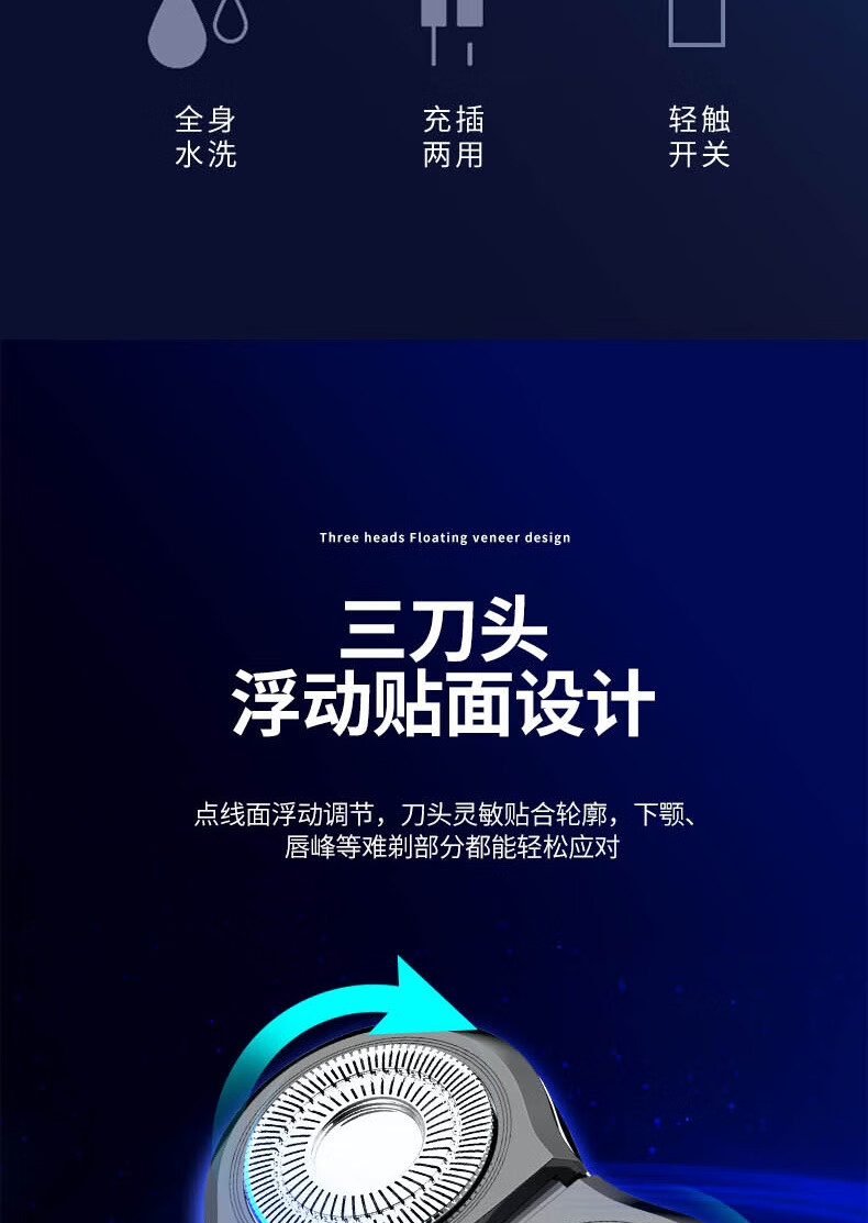 商品名称: Westinghouse 电动剃须刀 原装三刀头全身水洗胡须刀 干湿两用3D剃须刀 WL-TX501 WL-TX501/个