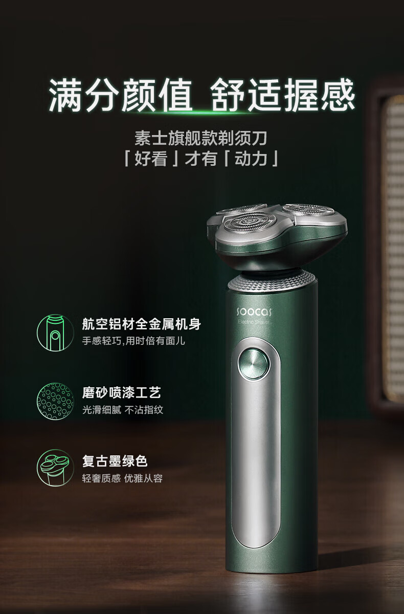 • 商品名称:素士 SOOCAS男士剃须刀电动刮胡刀智能全身水洗多功能 S5雅痞理容礼盒送男友七夕情人节礼物 S5/个