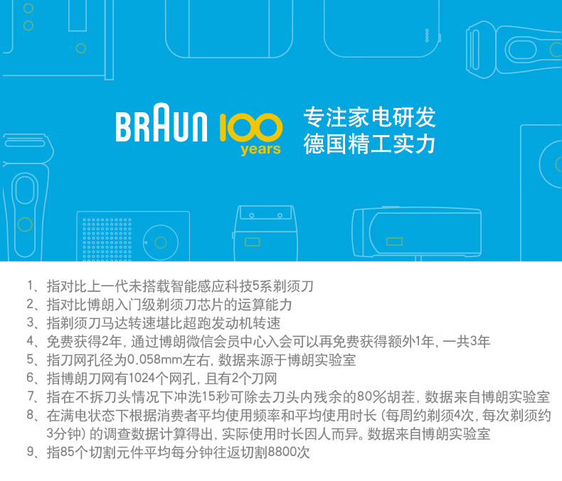包装清单: 博朗Braun5系电动剃须刀N5礼盒 (注:刀头网膜属于消耗品,不在保修范围内,无质保)(参数:刀头数量指刀头元件数量)