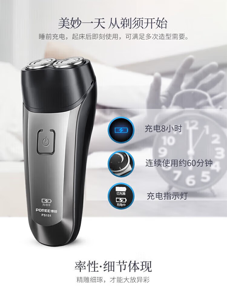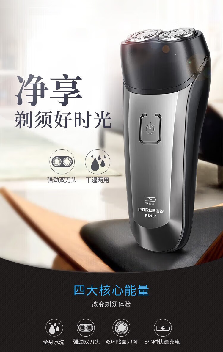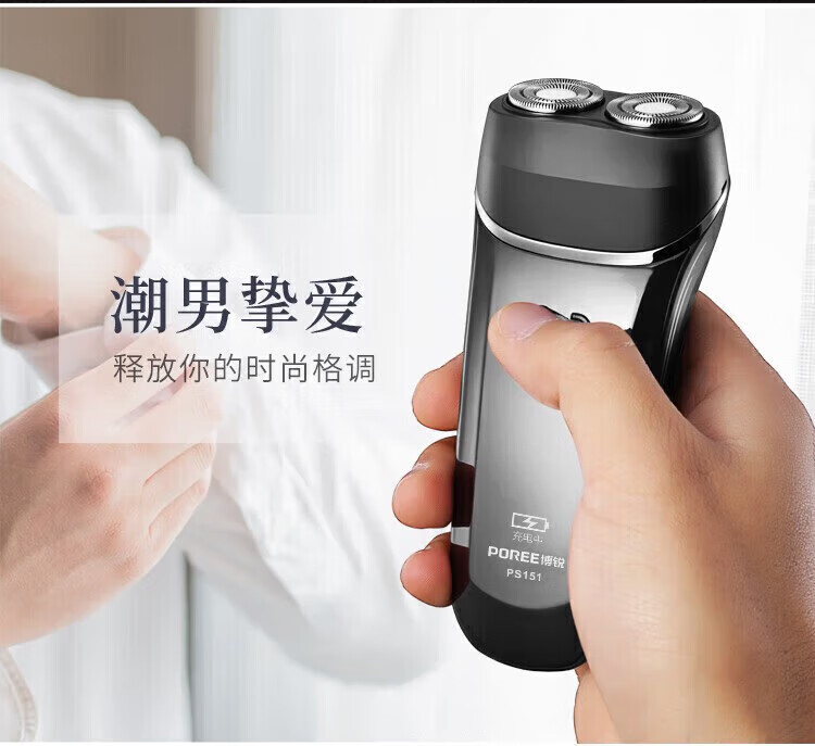 飞科(FLYCO)旗下博锐 电动剃须刀 双刀头 小巧便携 充电式智能剃胡刀父亲节礼物 PS151+2刀头+鼻毛器 PS151/个