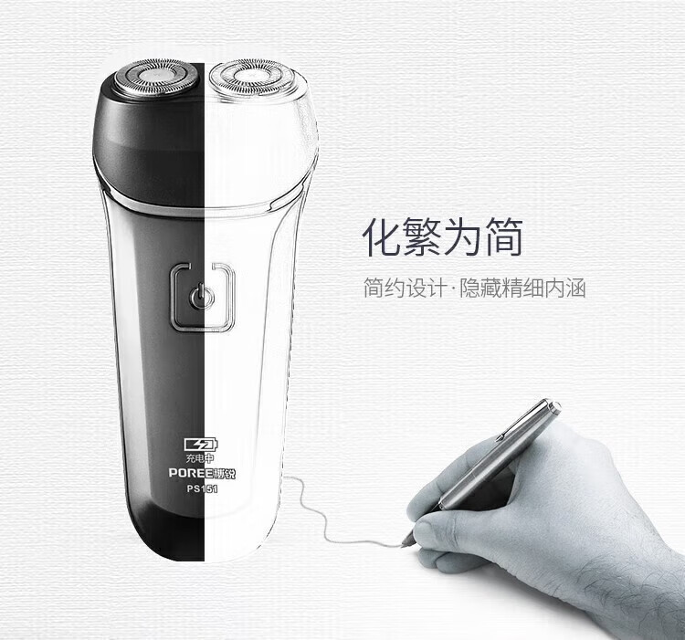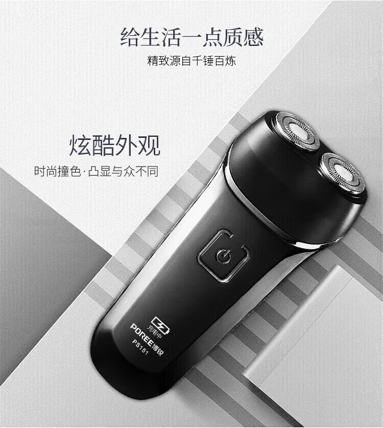 商品名称: 飞科(FLYCO)旗下博锐 电动剃须刀 双刀头 小巧便携 充电式智能剃胡刀父亲节礼物 PS151+2刀头+鼻毛器 PS151/个