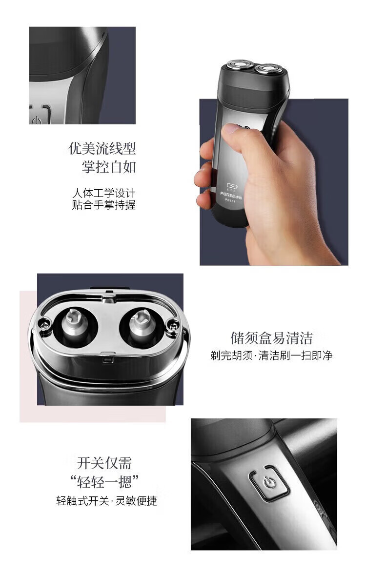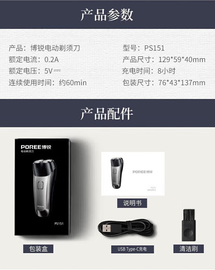 • 商品名称:飞科(FLYCO)旗下博锐 电动剃须刀 双刀头 小巧便携 充电式智能剃胡刀父亲节礼物 PS151+2刀头+鼻毛器 PS151/个