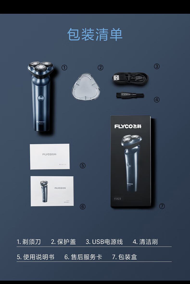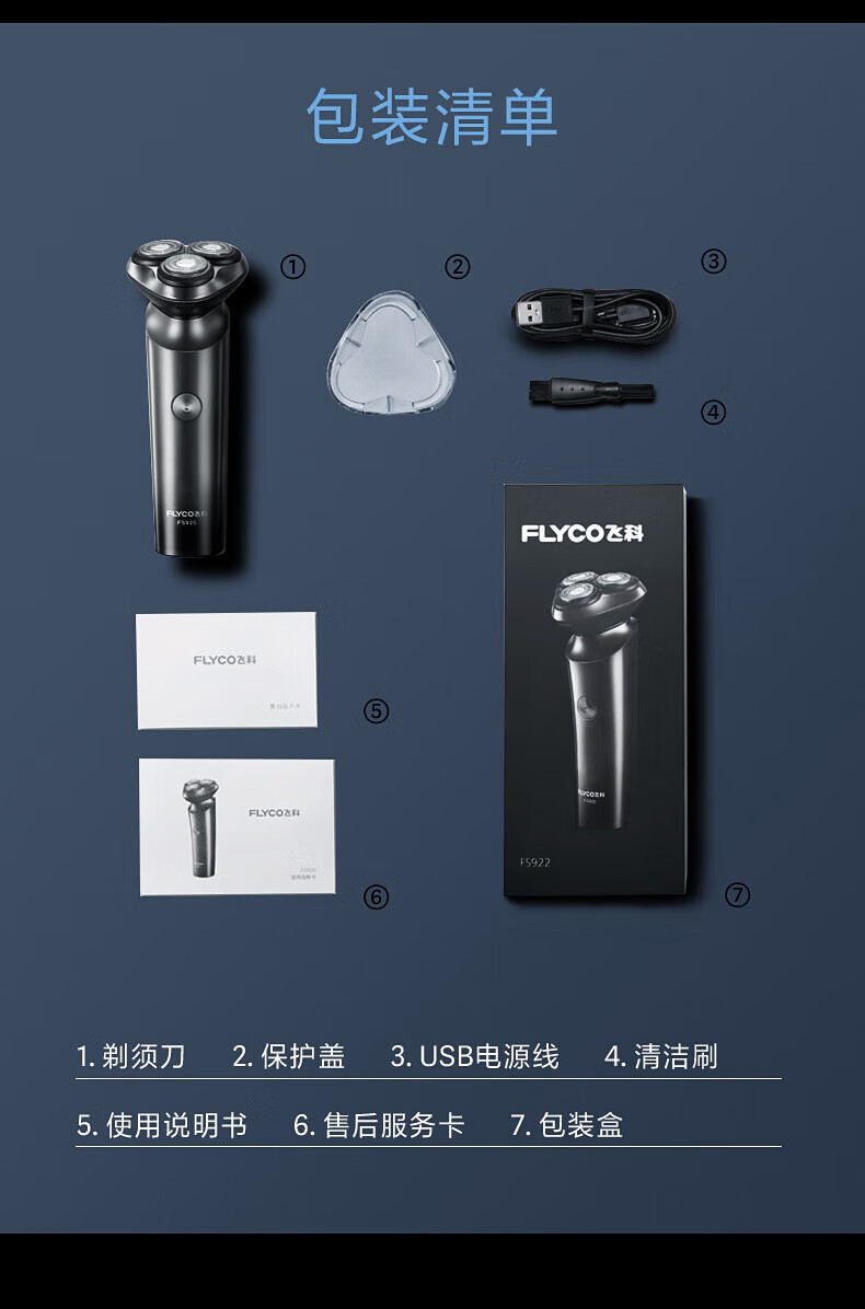 • 商品名称:飞科(FLYCO)剃须刀电动全身水洗刮胡刀剃胡须刨便携胡须刀FS923 FS923/个