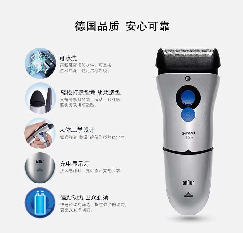 • 商品名称:博朗(BRAUN) 电动剃须刀 电动刮胡刀往复式胡须刀单刀头1系150s-1 150s-1/个