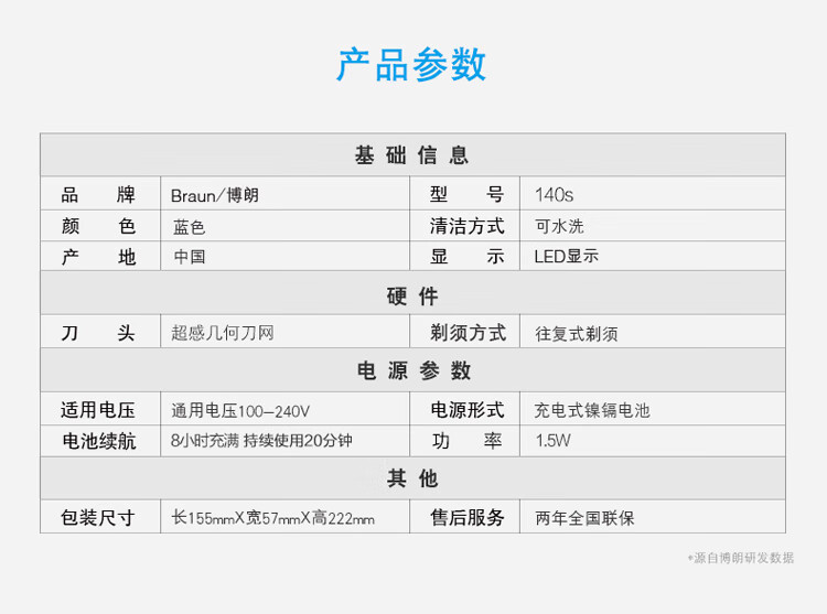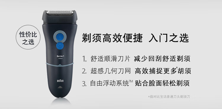 商品名称: 博朗(BRAUN) 剃须刀电动刮胡刀往复式1系140S生日礼物男 140s-1/个