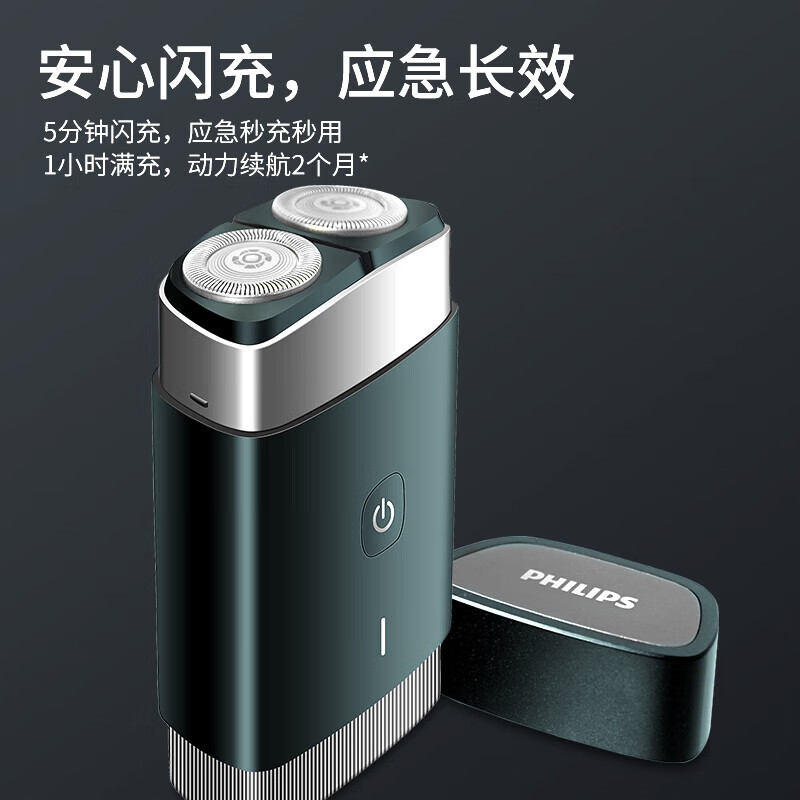 飞利浦(PHILIPS)电动剃须刀全新黑锋刃刮胡刀便携剃胡刀闪充亲肤贴合 配旅行收纳盒 PQ889/06 PQ889/06/个
