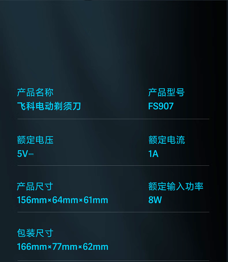 • 商品名称:飞科(FLYCO)剃须刀电动刮胡刀送男朋友父亲生日礼物全身水洗1小时快充智能显示FS907【墨青蓝】+3刀头 PS163/个
