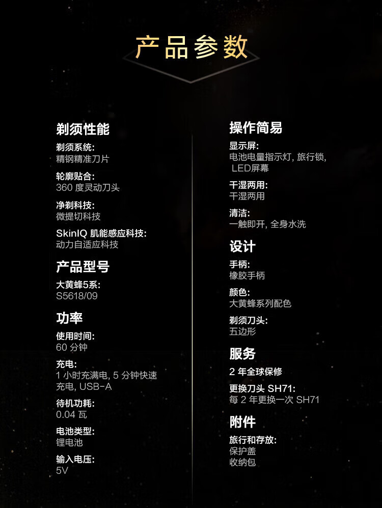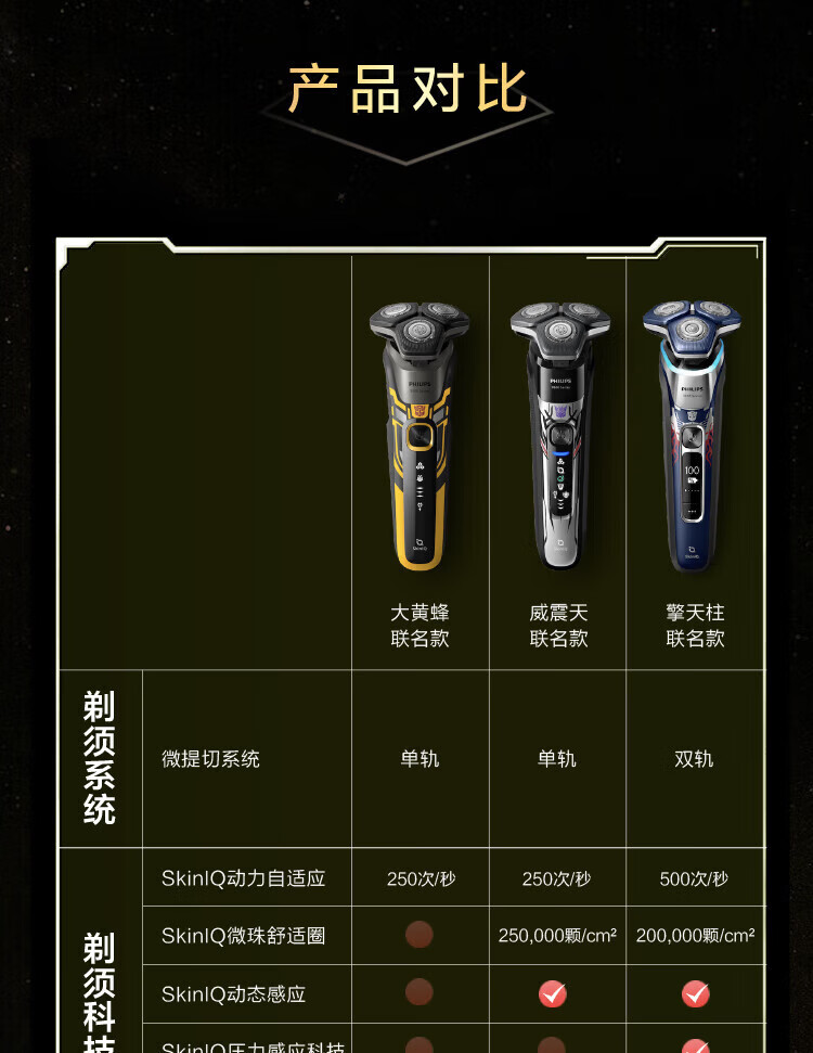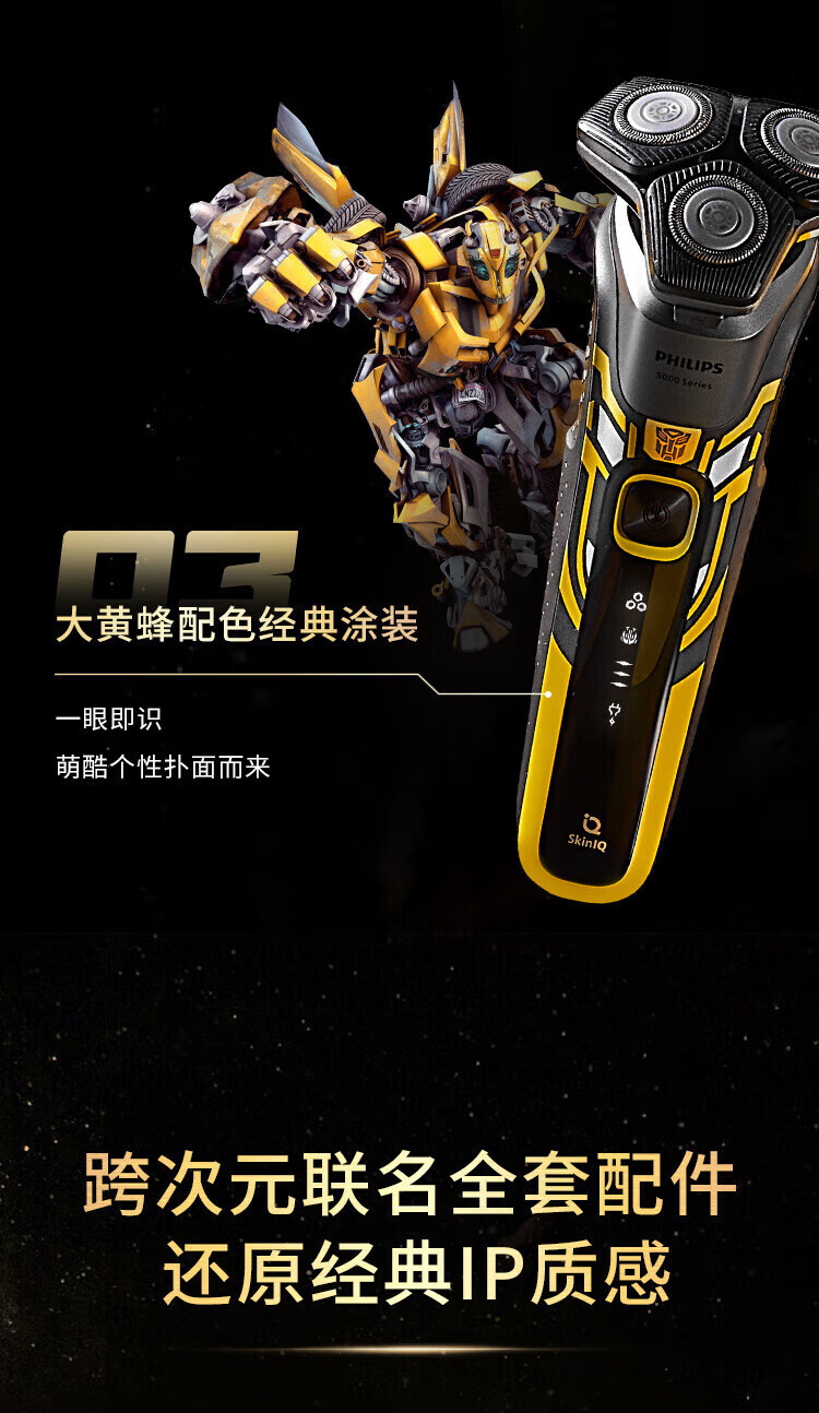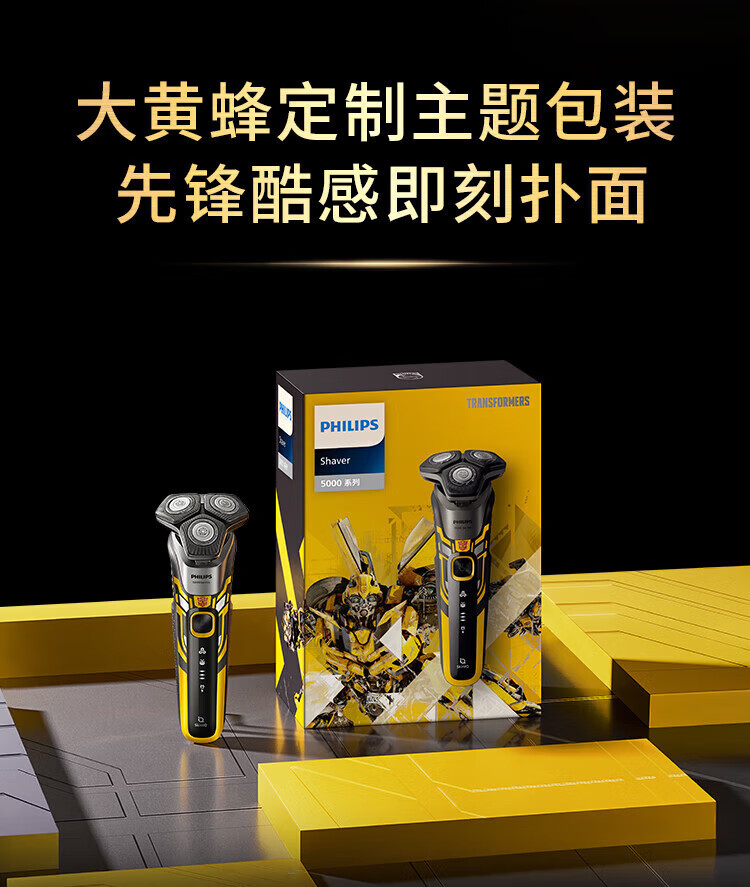 商品名称: 飞利浦剃须刀电动 蜂巢5系变形金刚大黄蜂联名 智能感应刮胡刀 送男友送父亲礼物 S5618/09大黄蜂联名款 S5618/09/个
