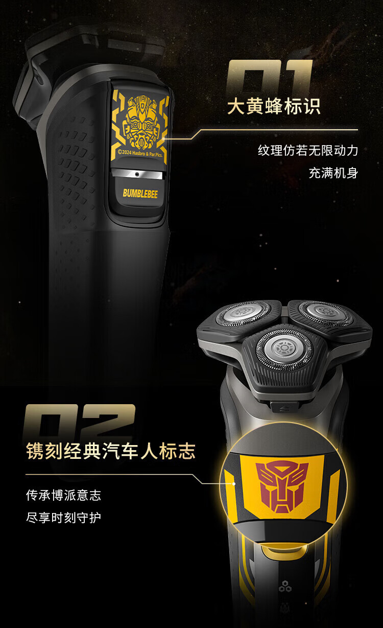 家用电器  > 个护健康  > 剃须刀  >  飞利浦/PHILIPS  >  飞利浦剃须刀电动 蜂巢5系变形金刚大黄蜂联名 智能感应刮胡刀 送男友送父亲礼物 S5618/09大黄蜂联名款 S5618/09/个