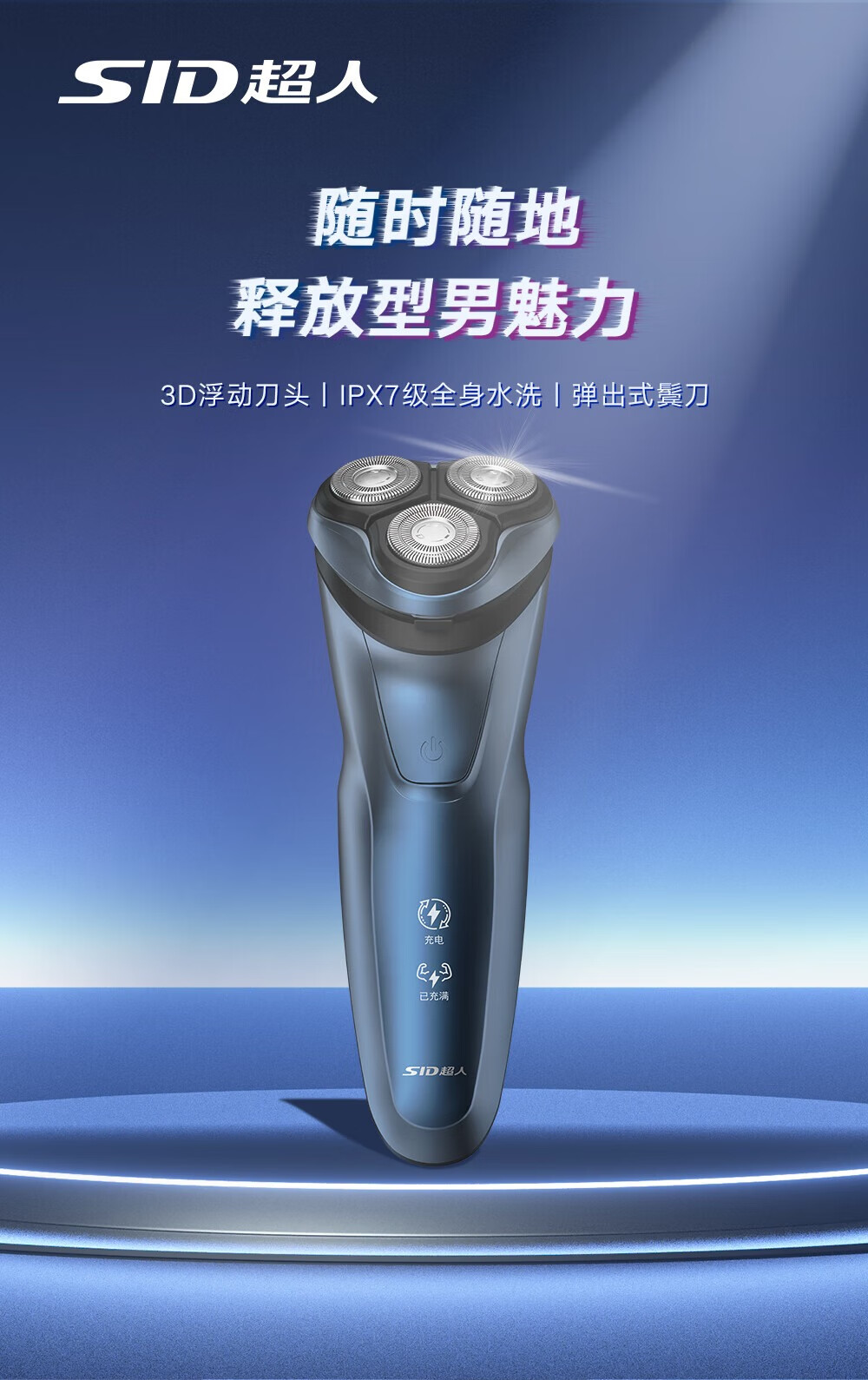 • 商品名称:超人(SID)剃须刀电动刮胡刀智能数显+快充-HS390 HS390/个