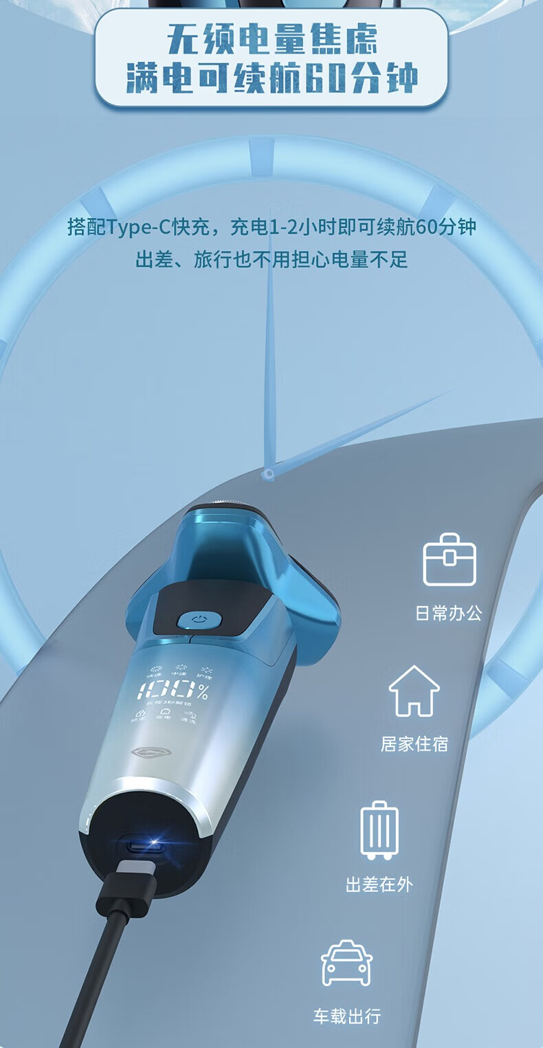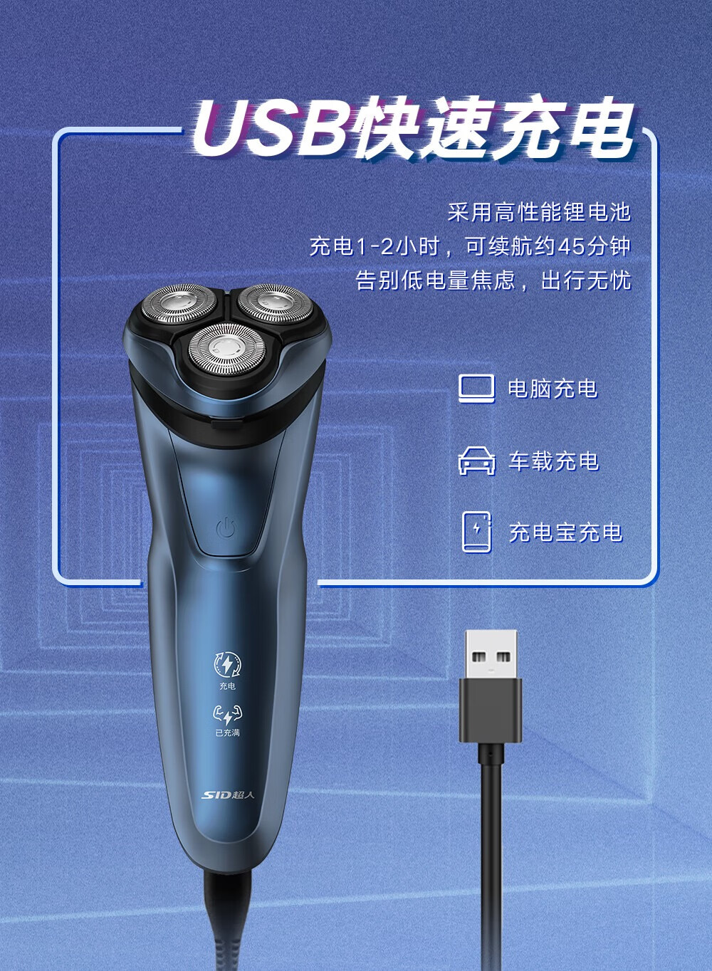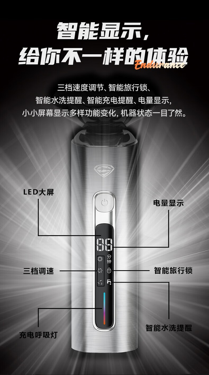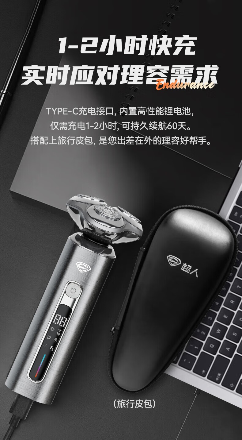 商品名称: 超人(SID)剃须刀电动刮胡刀智能数显+快充-HS390 HS390/个