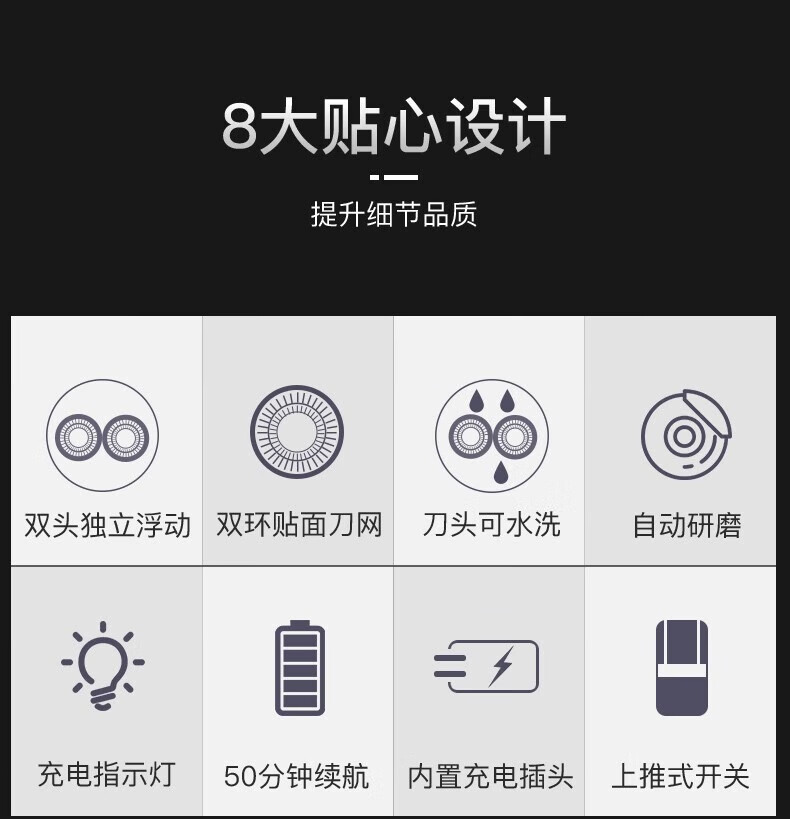 家用电器  > 个护健康  > 剃须刀  >  雷瓦/RIWA  >  雷瓦(RIWA)旋转双刀头磨砂工艺剃须刀 RA-5102/个