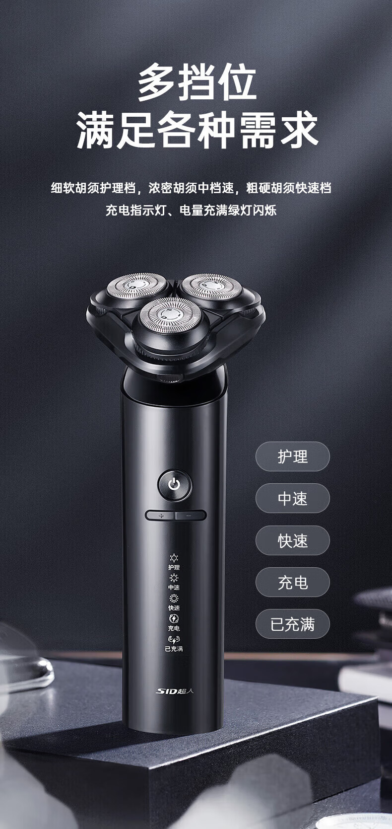 商品名称: 超人(SID)RS366智能研磨剃须刀大功率超人剃须刀刮胡刀水洗剃须刀+收纳包 RS366/个