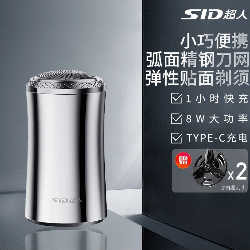 超人(SID)剃须刀电动男士迷你旅行便携式刮胡刀全身水洗车载小型剃胡刀潮流礼盒生日礼物送男友 RS7151/个