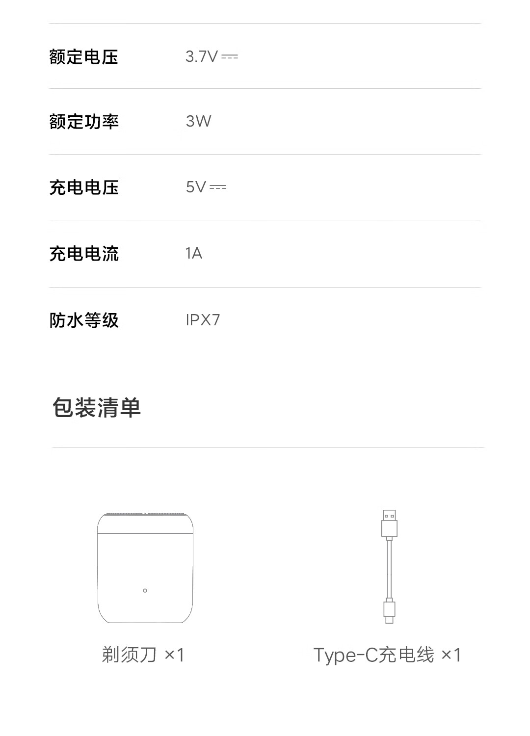 包装清单: 剃须刀、收纳包、清洁刷、Type-C充电线、说明书
