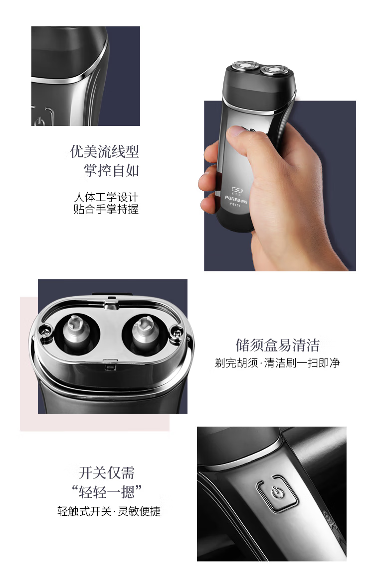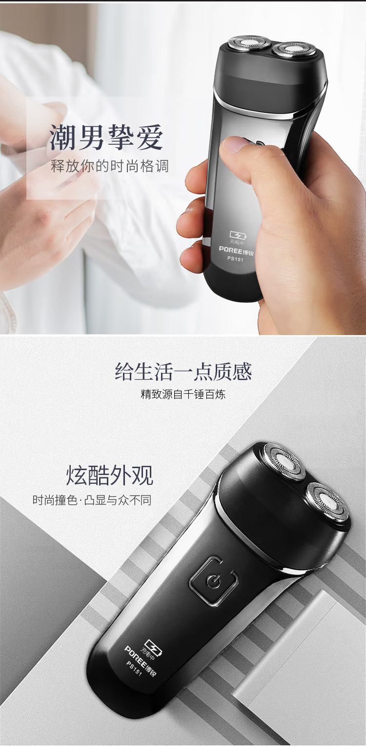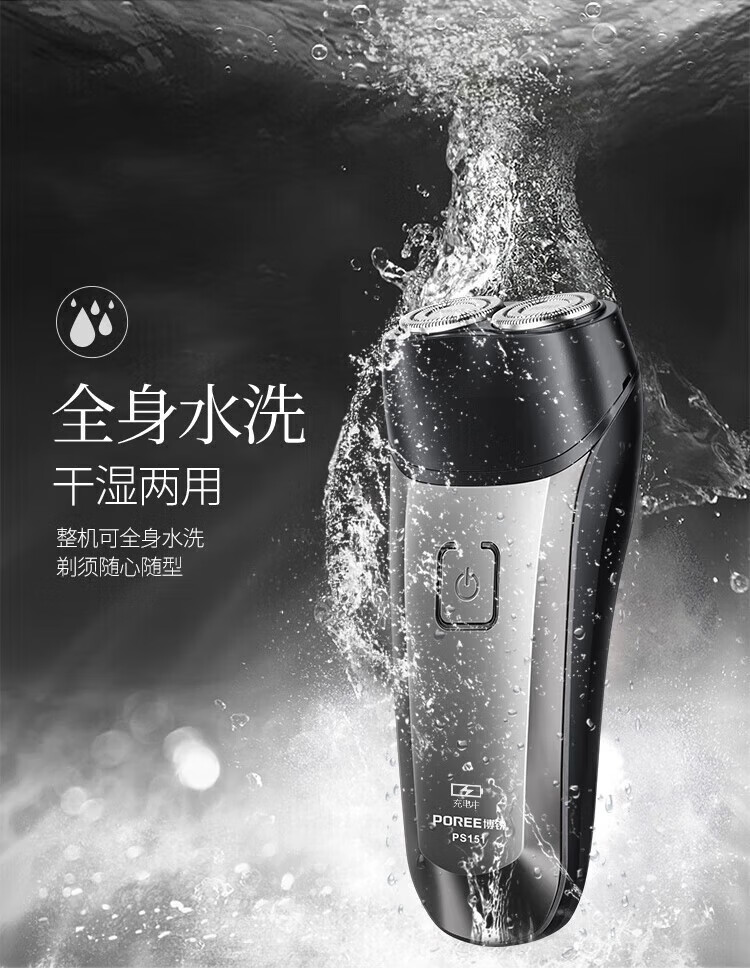 商品名称: 飞科(FLYCO)旗下博锐剃须刀电动刮胡刀 双刀头 小巧便携 充电式全身水洗智能剃胡刀 PS151 +2刀头 PS151/个