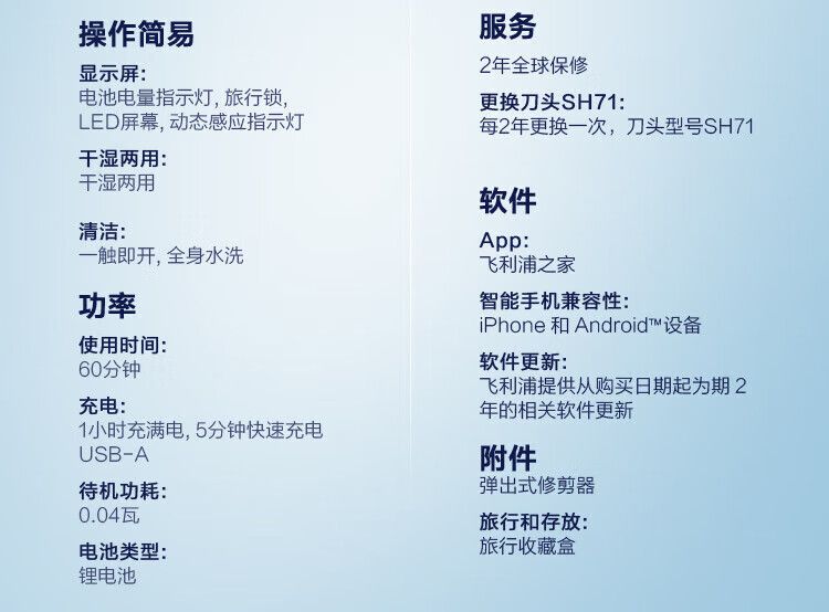 包装清单: 剃须刀主机*1,旅行保护盒*1,USB连接线*1