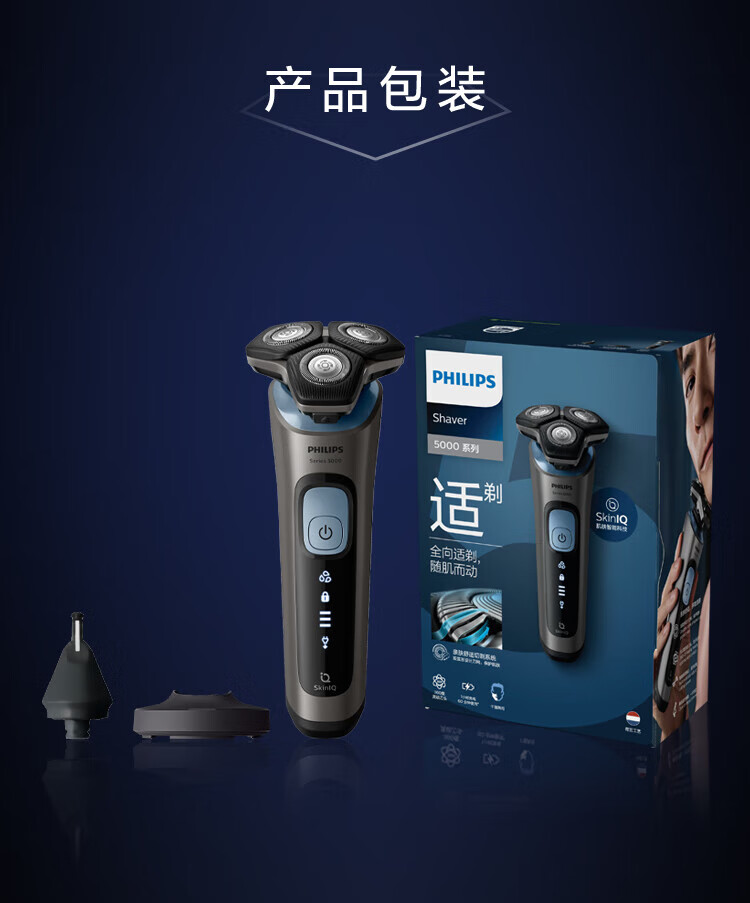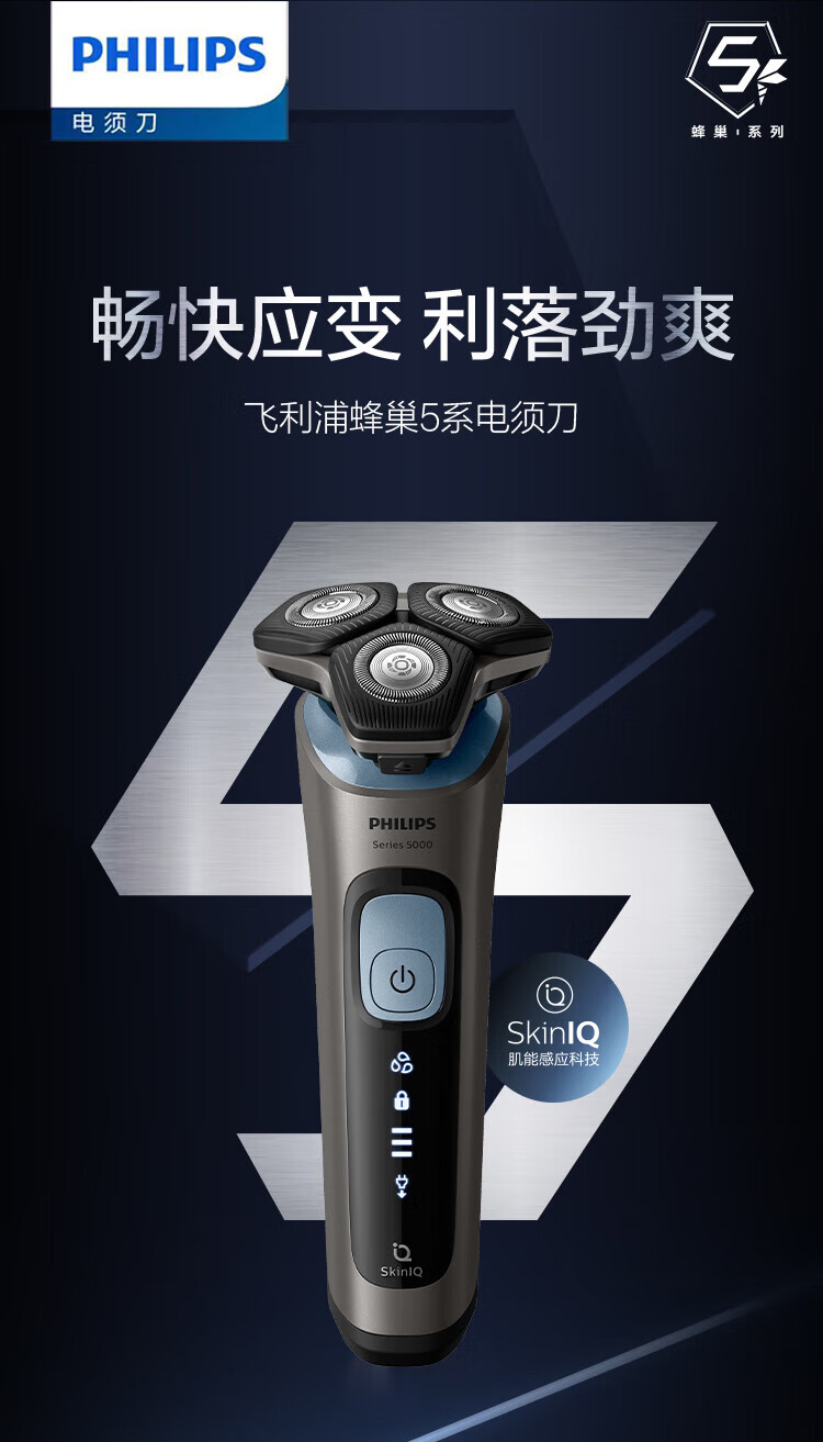 商品名称: 飞利浦(PHILIPS)电动剃须刀SkinIQ蜂巢5系智能感应刮胡刀SU5999/07支持一件代发 SU5999/07/个
