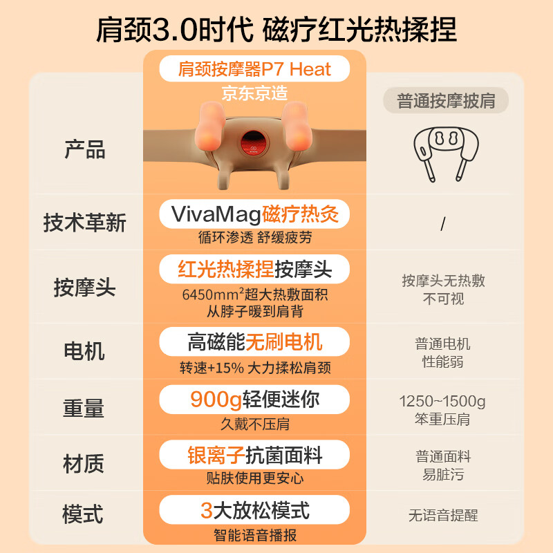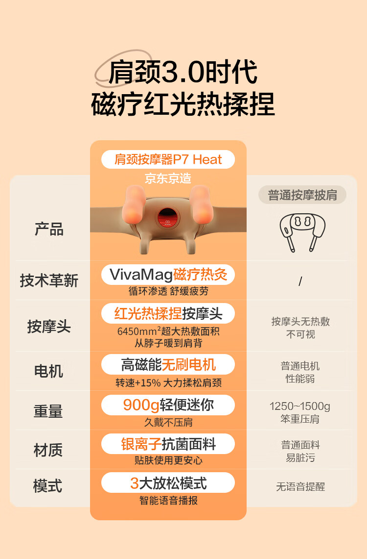 • 商品名称:京东京造颈椎按摩仪P7Heat 红光热敷斜方肌颈椎按摩器肩颈腰背部颈部按摩仪肩部生日礼物女新年礼物男 JZJV-P7 Heat/台