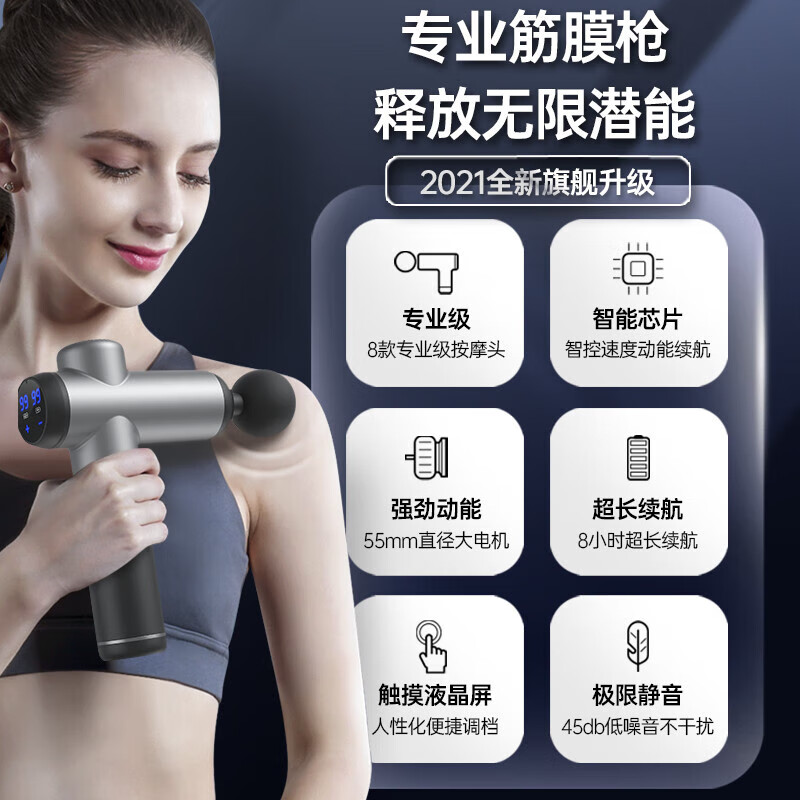 商品名称: 康佳(KONKA)筋膜枪 颈膜枪 深层肌肉放松按摩器 3秒环节酸痛 A8-2灰色 豪华版:99档+8头按摩头+收纳包 a8/个
