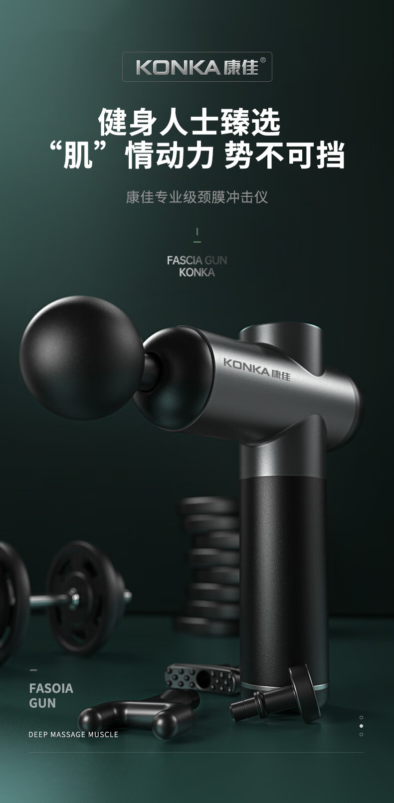 家用电器  > 个护健康  > 按摩器  >  康佳/KONKA  >  康佳(KONKA)筋膜枪 颈膜枪 深层肌肉放松按摩器 3秒环节酸痛 A8-2灰色 豪华版:99档+8头按摩头+收纳包 a8/个