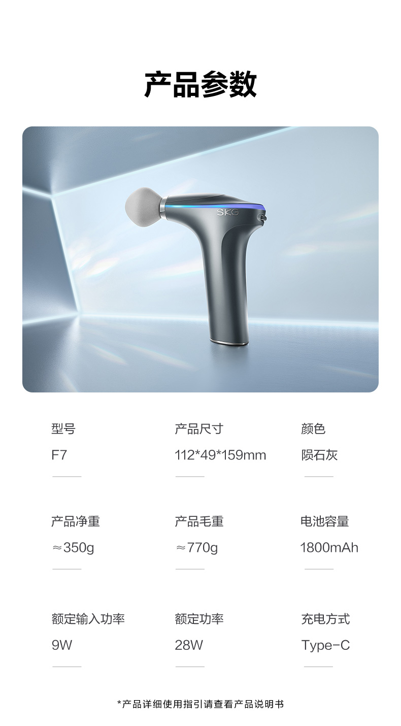 • 商品名称:SKG筋膜枪 F7 颈椎按摩器热敷按摩仪颈膜枪肩部颈部腰部腿部肌肉放松器陨石灰 新年礼物 支持一件代发 F7/台