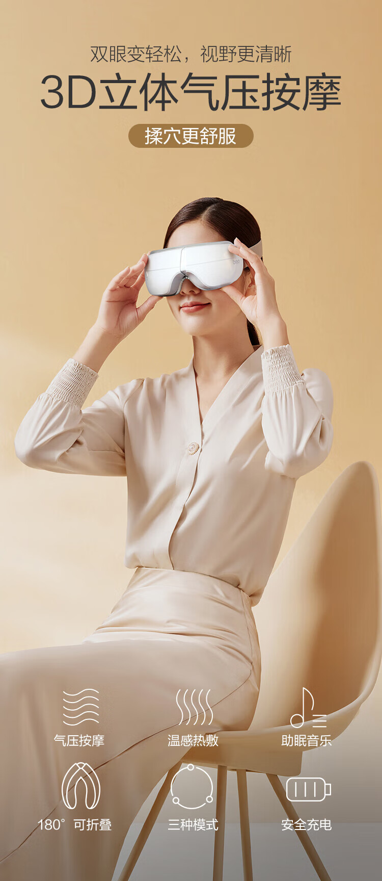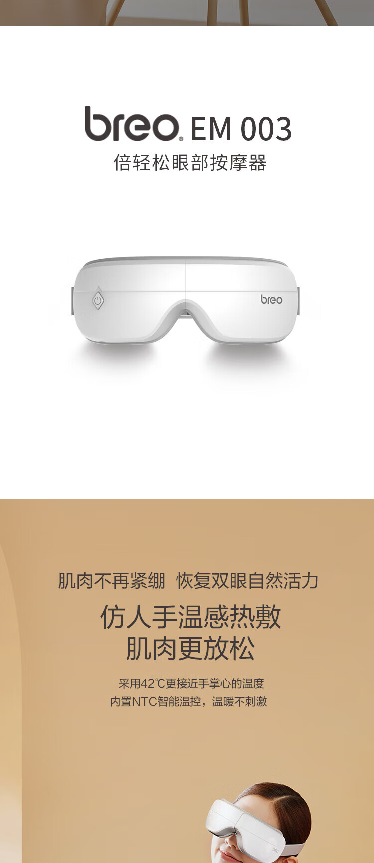 家用电器  > 个护健康  > 按摩器  >  倍轻松/breo  >  倍轻松 眼部按摩器EM003 恒温热敷眼罩3D立体气压按摩 白色 EM003/个