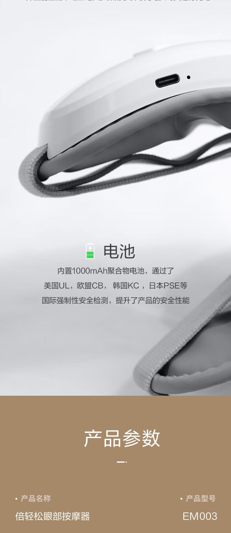 商品名称: 倍轻松 眼部按摩器EM003 恒温热敷眼罩3D立体气压按摩 白色 EM003/个
