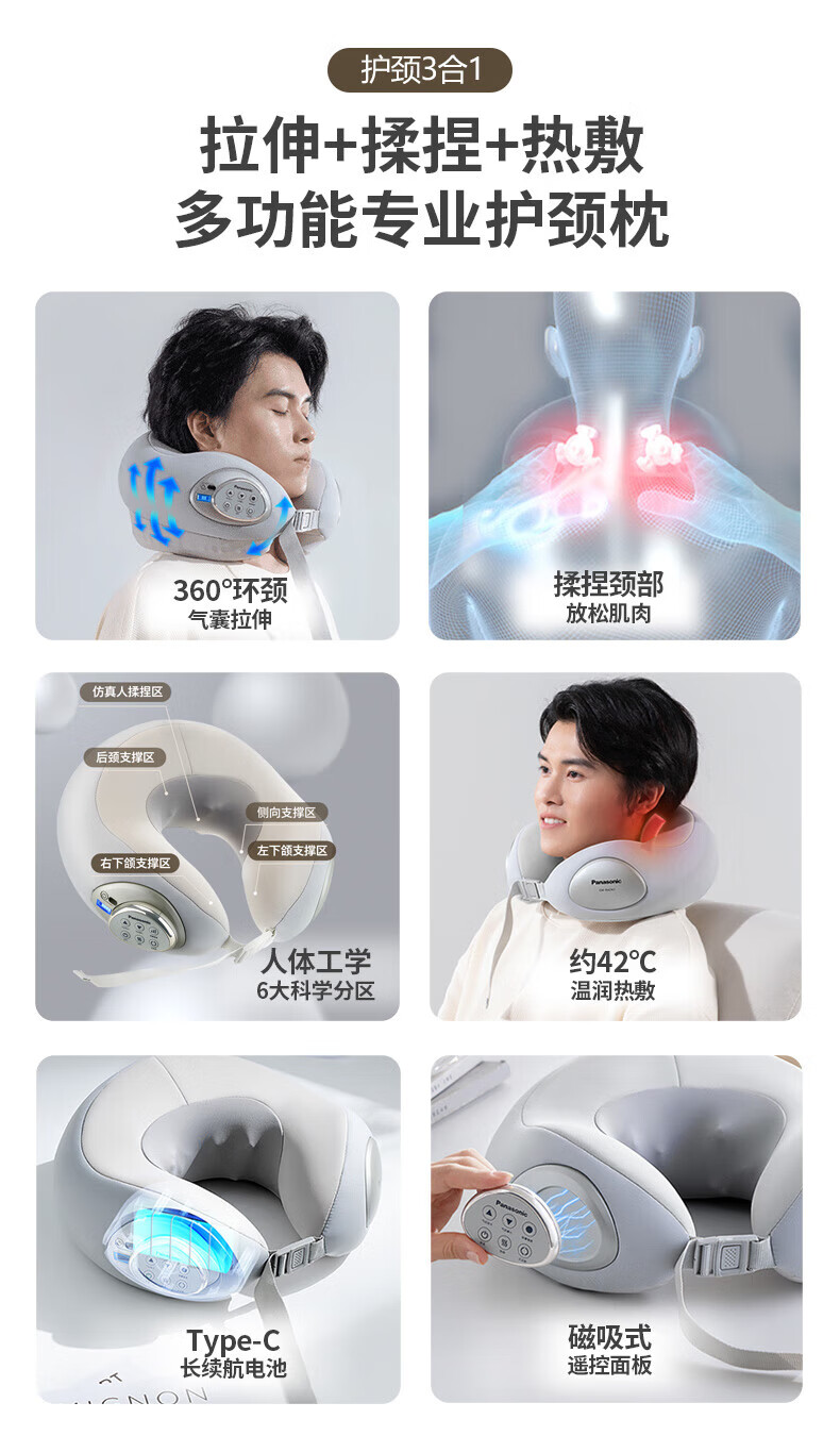 家用电器  > 个护健康  > 按摩器  >  松下/Panasonic  >  松下颈椎按摩器U型枕按摩披肩 肩颈按摩器腿腰颈部按摩仪按摩枕头公司员工礼品女朋友生日礼物RAD61 EW-RAD61H492/个