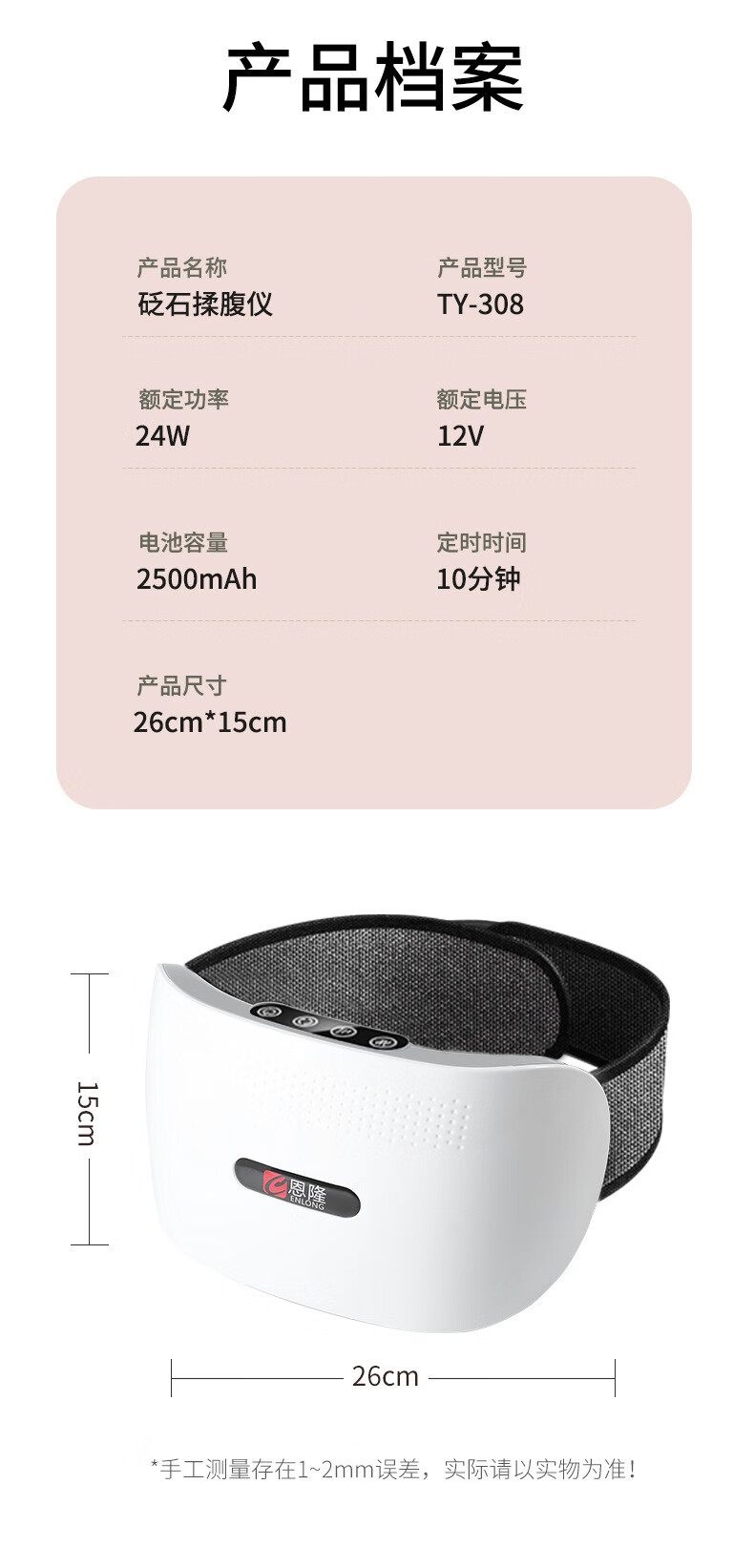 商品名称: 恩隆(enlong)全自动砭石揉腹仪 智能多功能红光艾草热敷腰带 腹部按摩器TY-308 TY-308/个